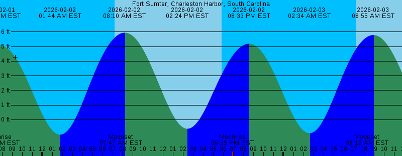 2026-02-02 01:44 AM EST -1.02 feet Low Tide 2026-02-02 07:13 AM EST Sunrise 2026-02-02 07:47 AM EST Moonset 2026-02-02 08:10 AM EST 5.95 feet High Tide 2026-02-02 02:24 PM EST -0.62 feet Low Tide 2026-02-02 05:53 PM EST Sunset 2026-02-02 06:55 PM EST Moonrise 2026-02-02 08:33 PM EST 5.19 feet High Tide 2026-02-03 02:34 AM EST -0.92 feet Low Tide 2026-02-03 07:12 AM EST Sunrise 2026-02-03 08:19 AM EST Moonset 2026-02-03 08:55 AM EST 5.79 feet High Tide 2026-02-03 03:08 PM EST -0.58 feet Low Tide 2026-02-03 05:54 PM EST Sunset 2026-02-03 07:59 PM EST Moonrise 2026-02-03 09:19 PM EST 5.22 feet High Tide 2026-02-04 03:21 AM EST -0.70 feet Low Tide 2026-02-04 07:12 AM EST Sunrise 2026-02-04 08:47 AM EST Moonset 2026-02-04 09:37 AM EST 5.52 feet High Tide 2026-02-04 03:49 PM EST -0.46 feet Low Tide 2026-02-04 05:55 PM EST Sunset 2026-02-04 09:01 PM EST Moonrise 2026-02-04 10:04 PM EST 5.17 feet High Tide 2026-02-05 04:07 AM EST -0.40 feet Low Tide 2026-02-05 07:11 AM EST Sunrise 2026-02-05 09:14 AM EST Moonset 2026-02-05 10:17 AM EST 5.18 feet High Tide 2026-02-05 04:29 PM EST -0.26 feet Low Tide 2026-02-05 05:55 PM EST Sunset |