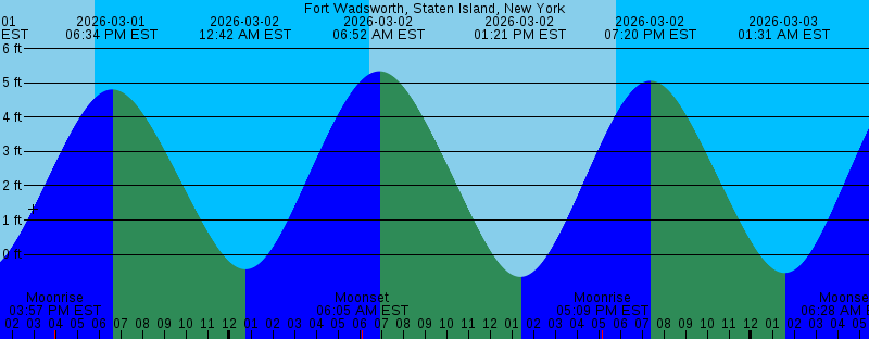 2026-03-01 03:57 PM EST Moonrise 2026-03-01 05:47 PM EST Sunset 2026-03-01 06:34 PM EST 4.81 feet High Tide 2026-03-02 12:42 AM EST -0.43 feet Low Tide 2026-03-02 06:05 AM EST Moonset 2026-03-02 06:28 AM EST Sunrise 2026-03-02 06:52 AM EST 5.34 feet High Tide 2026-03-02 01:21 PM EST -0.66 feet Low Tide 2026-03-02 05:09 PM EST Moonrise 2026-03-02 05:48 PM EST Sunset 2026-03-02 07:20 PM EST 5.06 feet High Tide 2026-03-03 01:31 AM EST -0.54 feet Low Tide 2026-03-03 06:26 AM EST Sunrise 2026-03-03 06:28 AM EST Moonset 2026-03-03 06:39 AM EST Full Moon 2026-03-03 07:36 AM EST 5.34 feet High Tide 2026-03-03 02:03 PM EST -0.71 feet Low Tide 2026-03-03 05:49 PM EST Sunset 2026-03-03 06:17 PM EST Moonrise 2026-03-03 08:03 PM EST 5.19 feet High Tide 2026-03-04 02:16 AM EST -0.54 feet Low Tide 2026-03-04 06:25 AM EST Sunrise 2026-03-04 06:50 AM EST Moonset 2026-03-04 08:17 AM EST 5.22 feet High Tide 2026-03-04 02:42 PM EST -0.64 feet Low Tide 2026-03-04 05:50 PM EST Sunset 2026-03-04 07:24 PM EST Moonrise 2026-03-04 08:45 PM EST 5.21 feet High Tide 2026-03-05 02:59 AM EST -0.44 feet Low Tide 2026-03-05 06:23 AM EST Sunrise 2026-03-05 07:11 AM EST Moonset 2026-03-05 08:58 AM EST 4.98 feet High Tide |