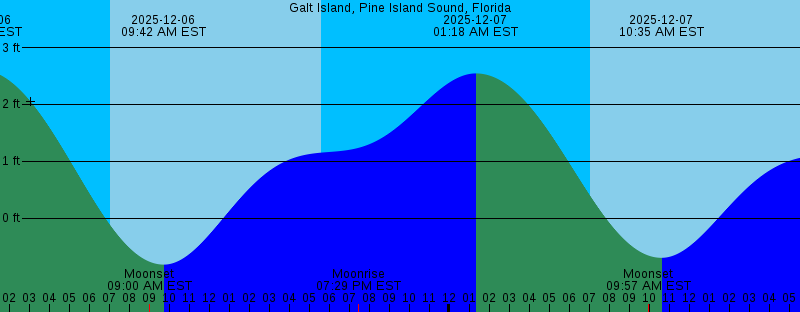 2025-12-06 07:03 AM EST Sunrise 2025-12-06 09:00 AM EST Moonset 2025-12-06 09:42 AM EST -0.82 feet Low Tide 2025-12-06 05:35 PM EST Sunset 2025-12-06 07:29 PM EST Moonrise 2025-12-07 01:18 AM EST 2.55 feet High Tide 2025-12-07 07:03 AM EST Sunrise 2025-12-07 09:57 AM EST Moonset 2025-12-07 10:35 AM EST -0.70 feet Low Tide 2025-12-07 05:36 PM EST Sunset 2025-12-07 08:39 PM EST Moonrise 2025-12-08 02:10 AM EST 2.38 feet High Tide 2025-12-08 07:04 AM EST Sunrise 2025-12-08 10:44 AM EST Moonset 2025-12-08 11:27 AM EST -0.52 feet Low Tide 2025-12-08 05:36 PM EST Sunset 2025-12-08 09:45 PM EST Moonrise 2025-12-09 03:08 AM EST 2.14 feet High Tide 2025-12-09 07:05 AM EST Sunrise 2025-12-09 11:24 AM EST Moonset 2025-12-09 12:17 PM EST -0.32 feet Low Tide 2025-12-09 05:36 PM EST Sunset 2025-12-09 07:36 PM EST 1.16 feet High Tide 2025-12-09 10:26 PM EST 1.12 feet Low Tide 2025-12-09 10:47 PM EST Moonrise |