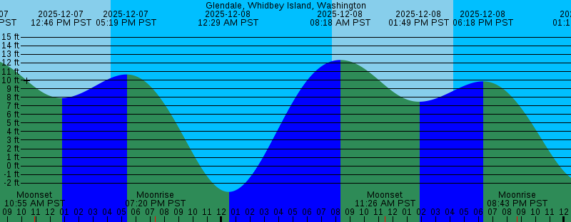 2025-12-07 07:29 AM PST 12.50 feet High Tide 2025-12-07 07:45 AM PST Sunrise 2025-12-07 10:55 AM PST Moonset 2025-12-07 12:46 PM PST 7.91 feet Low Tide 2025-12-07 04:16 PM PST Sunset 2025-12-07 05:19 PM PST 10.66 feet High Tide 2025-12-07 07:20 PM PST Moonrise 2025-12-08 12:29 AM PST -3.03 feet Low Tide 2025-12-08 07:46 AM PST Sunrise 2025-12-08 08:18 AM PST 12.35 feet High Tide 2025-12-08 11:26 AM PST Moonset 2025-12-08 01:49 PM PST 7.48 feet Low Tide 2025-12-08 04:16 PM PST Sunset 2025-12-08 06:18 PM PST 9.85 feet High Tide 2025-12-08 08:43 PM PST Moonrise 2025-12-09 01:18 AM PST -1.94 feet Low Tide 2025-12-09 07:47 AM PST Sunrise 2025-12-09 09:06 AM PST 12.14 feet High Tide 2025-12-09 11:49 AM PST Moonset 2025-12-09 02:58 PM PST 6.82 feet Low Tide 2025-12-09 04:16 PM PST Sunset 2025-12-09 07:24 PM PST 8.93 feet High Tide 2025-12-09 10:02 PM PST Moonrise 2025-12-10 02:09 AM PST -0.54 feet Low Tide 2025-12-10 07:48 AM PST Sunrise 2025-12-10 09:51 AM PST 11.92 feet High Tide 2025-12-10 12:07 PM PST Moonset 2025-12-10 04:10 PM PST 5.91 feet Low Tide 2025-12-10 04:16 PM PST Sunset 2025-12-10 08:40 PM PST 8.02 feet High Tide 2025-12-10 11:15 PM PST Moonrise |