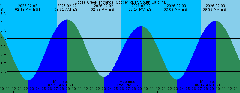 2026-02-02 02:18 AM EST -1.07 feet Low Tide 2026-02-02 07:14 AM EST Sunrise 2026-02-02 07:48 AM EST Moonset 2026-02-02 08:51 AM EST 6.31 feet High Tide 2026-02-02 02:58 PM EST -0.65 feet Low Tide 2026-02-02 05:53 PM EST Sunset 2026-02-02 06:55 PM EST Moonrise 2026-02-02 09:14 PM EST 5.51 feet High Tide 2026-02-03 03:08 AM EST -0.97 feet Low Tide 2026-02-03 07:13 AM EST Sunrise 2026-02-03 08:19 AM EST Moonset 2026-02-03 09:36 AM EST 6.14 feet High Tide 2026-02-03 03:42 PM EST -0.61 feet Low Tide 2026-02-03 05:54 PM EST Sunset 2026-02-03 08:00 PM EST Moonrise 2026-02-03 10:00 PM EST 5.54 feet High Tide 2026-02-04 03:55 AM EST -0.74 feet Low Tide 2026-02-04 07:12 AM EST Sunrise 2026-02-04 08:48 AM EST Moonset 2026-02-04 10:18 AM EST 5.86 feet High Tide 2026-02-04 04:23 PM EST -0.48 feet Low Tide 2026-02-04 05:55 PM EST Sunset 2026-02-04 09:01 PM EST Moonrise 2026-02-04 10:45 PM EST 5.49 feet High Tide 2026-02-05 04:41 AM EST -0.42 feet Low Tide 2026-02-05 07:11 AM EST Sunrise 2026-02-05 09:14 AM EST Moonset 2026-02-05 10:58 AM EST 5.50 feet High Tide 2026-02-05 05:03 PM EST -0.27 feet Low Tide 2026-02-05 05:56 PM EST Sunset |