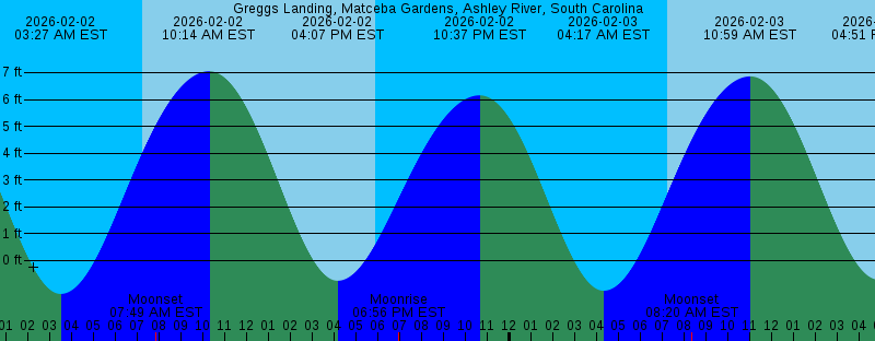 2026-02-02 03:27 AM EST -1.24 feet Low Tide 2026-02-02 07:15 AM EST Sunrise 2026-02-02 07:49 AM EST Moonset 2026-02-02 10:14 AM EST 7.05 feet High Tide 2026-02-02 04:07 PM EST -0.75 feet Low Tide 2026-02-02 05:54 PM EST Sunset 2026-02-02 06:56 PM EST Moonrise 2026-02-02 10:37 PM EST 6.15 feet High Tide 2026-02-03 04:17 AM EST -1.12 feet Low Tide 2026-02-03 07:14 AM EST Sunrise 2026-02-03 08:20 AM EST Moonset 2026-02-03 10:59 AM EST 6.86 feet High Tide 2026-02-03 04:51 PM EST -0.71 feet Low Tide 2026-02-03 05:54 PM EST Sunset 2026-02-03 08:00 PM EST Moonrise 2026-02-03 11:23 PM EST 6.18 feet High Tide 2026-02-04 05:04 AM EST -0.86 feet Low Tide 2026-02-04 07:13 AM EST Sunrise 2026-02-04 08:49 AM EST Moonset 2026-02-04 11:41 AM EST 6.54 feet High Tide 2026-02-04 05:32 PM EST -0.56 feet Low Tide 2026-02-04 05:55 PM EST Sunset 2026-02-04 09:02 PM EST Moonrise 2026-02-05 12:08 AM EST 6.12 feet High Tide 2026-02-05 05:50 AM EST -0.49 feet Low Tide 2026-02-05 07:12 AM EST Sunrise 2026-02-05 09:15 AM EST Moonset 2026-02-05 12:21 PM EST 6.14 feet High Tide 2026-02-05 05:56 PM EST Sunset 2026-02-05 06:12 PM EST -0.32 feet Low Tide 2026-02-05 10:01 PM EST Moonrise |