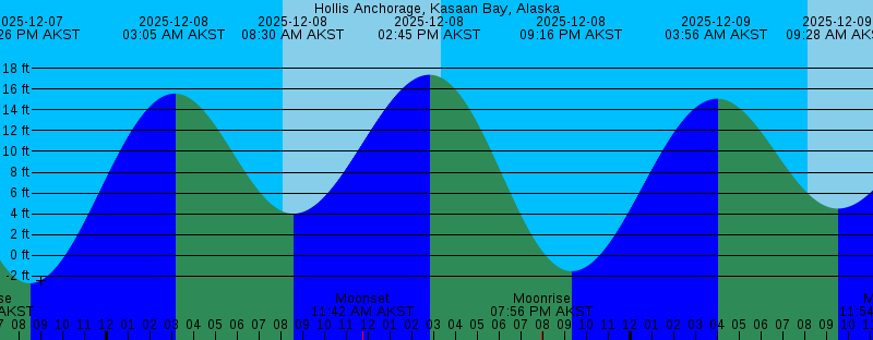 2025-12-07 11:23 AM AKST Moonset 2025-12-07 01:54 PM AKST 18.57 feet High Tide 2025-12-07 03:20 PM AKST Sunset 2025-12-07 06:20 PM AKST Moonrise 2025-12-07 08:26 PM AKST -2.68 feet Low Tide 2025-12-08 03:05 AM AKST 15.56 feet High Tide 2025-12-08 08:05 AM AKST Sunrise 2025-12-08 08:30 AM AKST 4.01 feet Low Tide 2025-12-08 11:42 AM AKST Moonset 2025-12-08 02:45 PM AKST 17.37 feet High Tide 2025-12-08 03:20 PM AKST Sunset 2025-12-08 07:56 PM AKST Moonrise 2025-12-08 09:16 PM AKST -1.52 feet Low Tide 2025-12-09 03:56 AM AKST 15.07 feet High Tide 2025-12-09 08:06 AM AKST Sunrise 2025-12-09 09:28 AM AKST 4.50 feet Low Tide 2025-12-09 11:54 AM AKST Moonset 2025-12-09 03:19 PM AKST Sunset 2025-12-09 03:39 PM AKST 15.87 feet High Tide 2025-12-09 09:25 PM AKST Moonrise 2025-12-09 10:07 PM AKST -0.16 feet Low Tide 2025-12-10 04:50 AM AKST 14.60 feet High Tide 2025-12-10 08:07 AM AKST Sunrise 2025-12-10 10:32 AM AKST 4.90 feet Low Tide 2025-12-10 12:02 PM AKST Moonset 2025-12-10 03:19 PM AKST Sunset 2025-12-10 04:38 PM AKST 14.27 feet High Tide 2025-12-10 10:49 PM AKST Moonrise 2025-12-10 11:01 PM AKST 1.26 feet Low Tide 2025-12-11 05:47 AM AKST 14.29 feet High Tide 2025-12-11 08:08 AM AKST Sunrise |