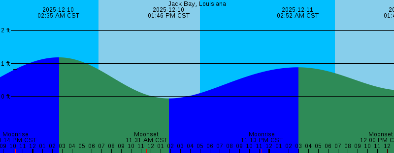 2025-12-09 10:14 PM CST Moonrise 2025-12-10 02:35 AM CST 1.19 feet High Tide 2025-12-10 06:41 AM CST Sunrise 2025-12-10 11:31 AM CST Moonset 2025-12-10 01:46 PM CST -0.06 feet Low Tide 2025-12-10 04:59 PM CST Sunset 2025-12-10 11:13 PM CST Moonrise 2025-12-11 02:52 AM CST 0.89 feet High Tide 2025-12-11 06:41 AM CST Sunrise 2025-12-11 12:00 PM CST Moonset 2025-12-11 01:43 PM CST 0.18 feet Low Tide 2025-12-11 02:52 PM CST Last Quarter 2025-12-11 04:59 PM CST Sunset 2025-12-12 12:10 AM CST Moonrise 2025-12-12 12:37 AM CST 0.62 feet High Tide 2025-12-12 06:42 AM CST Sunrise 2025-12-12 12:10 PM CST 0.36 feet Low Tide 2025-12-12 12:27 PM CST Moonset 2025-12-12 04:59 PM CST Sunset 2025-12-12 09:07 PM CST 0.64 feet High Tide 2025-12-13 01:04 AM CST Moonrise 2025-12-13 06:31 AM CST 0.25 feet Low Tide 2025-12-13 06:43 AM CST Sunrise 2025-12-13 12:54 PM CST Moonset 2025-12-13 05:00 PM CST Sunset 2025-12-13 08:10 PM CST 0.81 feet High Tide |