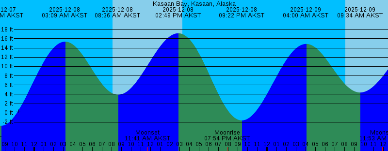 2025-12-07 11:22 AM AKST Moonset 2025-12-07 01:58 PM AKST 18.37 feet High Tide 2025-12-07 03:18 PM AKST Sunset 2025-12-07 06:19 PM AKST Moonrise 2025-12-07 08:32 PM AKST -2.78 feet Low Tide 2025-12-08 03:09 AM AKST 15.36 feet High Tide 2025-12-08 08:04 AM AKST Sunrise 2025-12-08 08:36 AM AKST 3.91 feet Low Tide 2025-12-08 11:41 AM AKST Moonset 2025-12-08 02:49 PM AKST 17.17 feet High Tide 2025-12-08 03:18 PM AKST Sunset 2025-12-08 07:54 PM AKST Moonrise 2025-12-08 09:22 PM AKST -1.62 feet Low Tide 2025-12-09 04:00 AM AKST 14.87 feet High Tide 2025-12-09 08:05 AM AKST Sunrise 2025-12-09 09:34 AM AKST 4.40 feet Low Tide 2025-12-09 11:53 AM AKST Moonset 2025-12-09 03:18 PM AKST Sunset 2025-12-09 03:43 PM AKST 15.67 feet High Tide 2025-12-09 09:24 PM AKST Moonrise 2025-12-09 10:13 PM AKST -0.26 feet Low Tide 2025-12-10 04:54 AM AKST 14.40 feet High Tide 2025-12-10 08:07 AM AKST Sunrise 2025-12-10 10:38 AM AKST 4.80 feet Low Tide 2025-12-10 12:01 PM AKST Moonset 2025-12-10 03:18 PM AKST Sunset 2025-12-10 04:42 PM AKST 14.07 feet High Tide 2025-12-10 10:48 PM AKST Moonrise 2025-12-10 11:07 PM AKST 1.16 feet Low Tide 2025-12-11 05:51 AM AKST 14.09 feet High Tide 2025-12-11 08:08 AM AKST Sunrise |