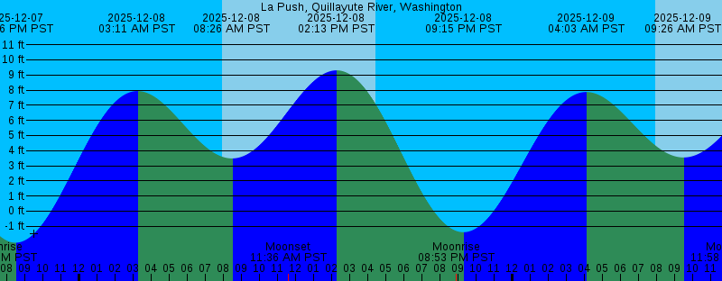 2025-12-07 11:04 AM PST Moonset 2025-12-07 01:21 PM PST 10.00 feet High Tide 2025-12-07 04:25 PM PST Sunset 2025-12-07 07:30 PM PST Moonrise 2025-12-07 08:26 PM PST -2.09 feet Low Tide 2025-12-08 03:11 AM PST 7.94 feet High Tide 2025-12-08 07:55 AM PST Sunrise 2025-12-08 08:26 AM PST 3.48 feet Low Tide 2025-12-08 11:36 AM PST Moonset 2025-12-08 02:13 PM PST 9.31 feet High Tide 2025-12-08 04:25 PM PST Sunset 2025-12-08 08:53 PM PST Moonrise 2025-12-08 09:15 PM PST -1.39 feet Low Tide 2025-12-09 04:03 AM PST 7.87 feet High Tide 2025-12-09 07:56 AM PST Sunrise 2025-12-09 09:26 AM PST 3.55 feet Low Tide 2025-12-09 11:58 AM PST Moonset 2025-12-09 03:09 PM PST 8.42 feet High Tide 2025-12-09 04:25 PM PST Sunset 2025-12-09 10:04 PM PST -0.53 feet Low Tide 2025-12-09 10:11 PM PST Moonrise 2025-12-10 04:56 AM PST 7.85 feet High Tide 2025-12-10 07:57 AM PST Sunrise 2025-12-10 10:35 AM PST 3.51 feet Low Tide 2025-12-10 12:16 PM PST Moonset 2025-12-10 04:11 PM PST 7.46 feet High Tide 2025-12-10 04:25 PM PST Sunset 2025-12-10 10:54 PM PST 0.40 feet Low Tide 2025-12-10 11:25 PM PST Moonrise 2025-12-11 05:48 AM PST 7.88 feet High Tide 2025-12-11 07:58 AM PST Sunrise |