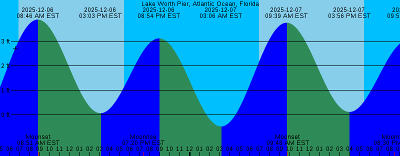 2025-12-06 06:55 AM EST Sunrise 2025-12-06 08:46 AM EST 3.90 feet High Tide 2025-12-06 08:51 AM EST Moonset 2025-12-06 03:03 PM EST 0.07 feet Low Tide 2025-12-06 05:27 PM EST Sunset 2025-12-06 07:20 PM EST Moonrise 2025-12-06 08:54 PM EST 3.13 feet High Tide 2025-12-07 03:06 AM EST -0.47 feet Low Tide 2025-12-07 06:55 AM EST Sunrise 2025-12-07 09:39 AM EST 3.77 feet High Tide 2025-12-07 09:48 AM EST Moonset 2025-12-07 03:56 PM EST 0.12 feet Low Tide 2025-12-07 05:27 PM EST Sunset 2025-12-07 08:30 PM EST Moonrise 2025-12-07 09:50 PM EST 3.06 feet High Tide 2025-12-08 04:01 AM EST -0.28 feet Low Tide 2025-12-08 06:56 AM EST Sunrise 2025-12-08 10:33 AM EST 3.59 feet High Tide 2025-12-08 10:36 AM EST Moonset 2025-12-08 04:50 PM EST 0.20 feet Low Tide 2025-12-08 05:27 PM EST Sunset 2025-12-08 09:37 PM EST Moonrise 2025-12-08 10:48 PM EST 2.97 feet High Tide 2025-12-09 04:58 AM EST -0.04 feet Low Tide 2025-12-09 06:57 AM EST Sunrise 2025-12-09 11:16 AM EST Moonset 2025-12-09 11:26 AM EST 3.38 feet High Tide 2025-12-09 05:27 PM EST Sunset 2025-12-09 05:46 PM EST 0.27 feet Low Tide 2025-12-09 10:39 PM EST Moonrise 2025-12-09 11:48 PM EST 2.89 feet High Tide |