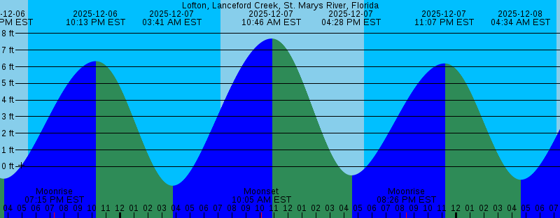 2025-12-06 03:37 PM EST -0.73 feet Low Tide 2025-12-06 05:24 PM EST Sunset 2025-12-06 07:15 PM EST Moonrise 2025-12-06 10:13 PM EST 6.33 feet High Tide 2025-12-07 03:41 AM EST -1.15 feet Low Tide 2025-12-07 07:10 AM EST Sunrise 2025-12-07 10:05 AM EST Moonset 2025-12-07 10:46 AM EST 7.69 feet High Tide 2025-12-07 04:28 PM EST -0.53 feet Low Tide 2025-12-07 05:24 PM EST Sunset 2025-12-07 08:26 PM EST Moonrise 2025-12-07 11:07 PM EST 6.20 feet High Tide 2025-12-08 04:34 AM EST -0.79 feet Low Tide 2025-12-08 07:11 AM EST Sunrise 2025-12-08 10:51 AM EST Moonset 2025-12-08 11:39 AM EST 7.34 feet High Tide 2025-12-08 05:21 PM EST -0.27 feet Low Tide 2025-12-08 05:24 PM EST Sunset 2025-12-08 09:35 PM EST Moonrise 2025-12-09 12:02 AM EST 6.03 feet High Tide 2025-12-09 05:29 AM EST -0.33 feet Low Tide 2025-12-09 07:12 AM EST Sunrise 2025-12-09 11:28 AM EST Moonset 2025-12-09 12:31 PM EST 6.92 feet High Tide 2025-12-09 05:25 PM EST Sunset 2025-12-09 06:16 PM EST -0.01 feet Low Tide 2025-12-09 10:40 PM EST Moonrise 2025-12-10 12:57 AM EST 5.87 feet High Tide 2025-12-10 06:29 AM EST 0.13 feet Low Tide 2025-12-10 07:12 AM EST Sunrise 2025-12-10 12:00 PM EST Moonset 2025-12-10 01:22 PM EST 6.46 feet High Tide |