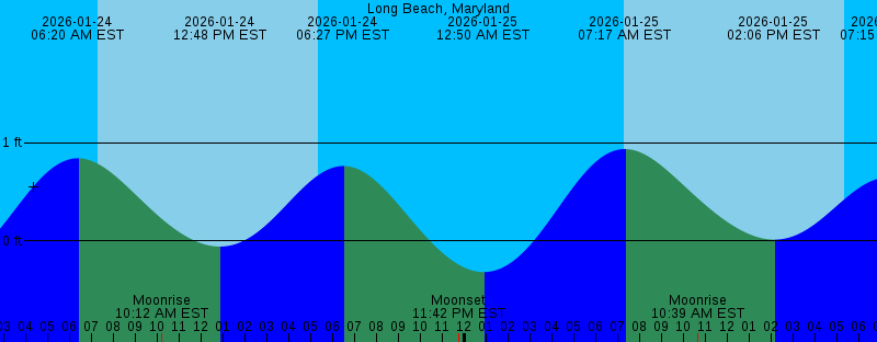 2026-01-24 06:20 AM EST 0.84 feet High Tide 2026-01-24 07:17 AM EST Sunrise 2026-01-24 10:12 AM EST Moonrise 2026-01-24 12:48 PM EST -0.06 feet Low Tide 2026-01-24 05:19 PM EST Sunset 2026-01-24 06:27 PM EST 0.76 feet High Tide 2026-01-24 11:42 PM EST Moonset 2026-01-25 12:50 AM EST -0.32 feet Low Tide 2026-01-25 07:16 AM EST Sunrise 2026-01-25 07:17 AM EST 0.94 feet High Tide 2026-01-25 10:39 AM EST Moonrise 2026-01-25 02:06 PM EST 0.01 feet Low Tide 2026-01-25 05:20 PM EST Sunset 2026-01-25 07:15 PM EST 0.65 feet High Tide 2026-01-25 11:48 PM EST First Quarter 2026-01-26 12:54 AM EST Moonset 2026-01-26 01:31 AM EST -0.36 feet Low Tide 2026-01-26 07:15 AM EST Sunrise 2026-01-26 08:17 AM EST 1.02 feet High Tide 2026-01-26 11:10 AM EST Moonrise 2026-01-26 03:29 PM EST 0.05 feet Low Tide 2026-01-26 05:21 PM EST Sunset 2026-01-26 08:09 PM EST 0.54 feet High Tide 2026-01-27 02:09 AM EST Moonset 2026-01-27 02:20 AM EST -0.39 feet Low Tide 2026-01-27 07:15 AM EST Sunrise 2026-01-27 09:21 AM EST 1.09 feet High Tide 2026-01-27 11:49 AM EST Moonrise 2026-01-27 04:48 PM EST 0.04 feet Low Tide 2026-01-27 05:22 PM EST Sunset 2026-01-27 09:11 PM EST 0.47 feet High Tide |