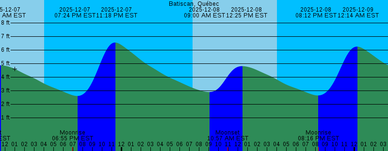 2025-12-07 07:19 AM EST Sunrise 2025-12-07 08:01 AM EST 2.87 feet Low Tide 2025-12-07 10:23 AM EST Moonset 2025-12-07 11:31 AM EST 4.87 feet High Tide 2025-12-07 04:01 PM EST Sunset 2025-12-07 06:55 PM EST Moonrise 2025-12-07 07:24 PM EST 2.61 feet Low Tide 2025-12-07 11:18 PM EST 6.55 feet High Tide 2025-12-08 07:20 AM EST Sunrise 2025-12-08 09:00 AM EST 2.90 feet Low Tide 2025-12-08 10:57 AM EST Moonset 2025-12-08 12:25 PM EST 4.81 feet High Tide 2025-12-08 04:01 PM EST Sunset 2025-12-08 08:12 PM EST 2.65 feet Low Tide 2025-12-08 08:16 PM EST Moonrise 2025-12-09 12:14 AM EST 6.25 feet High Tide 2025-12-09 07:21 AM EST Sunrise 2025-12-09 09:56 AM EST 2.86 feet Low Tide 2025-12-09 11:22 AM EST Moonset 2025-12-09 01:17 PM EST 4.72 feet High Tide 2025-12-09 04:01 PM EST Sunset 2025-12-09 09:04 PM EST 2.67 feet Low Tide 2025-12-09 09:34 PM EST Moonrise 2025-12-10 01:13 AM EST 5.85 feet High Tide 2025-12-10 07:22 AM EST Sunrise 2025-12-10 10:47 AM EST 2.76 feet Low Tide 2025-12-10 11:42 AM EST Moonset 2025-12-10 02:10 PM EST 4.59 feet High Tide 2025-12-10 04:01 PM EST Sunset 2025-12-10 10:00 PM EST 2.67 feet Low Tide 2025-12-10 10:47 PM EST Moonrise 2025-12-11 02:13 AM EST 5.37 feet High Tide |