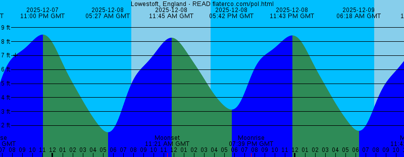 2025-12-07 03:39 PM GMT Sunset 2025-12-07 04:57 PM GMT 2.62 feet Low Tide 2025-12-07 06:09 PM GMT Moonrise 2025-12-07 11:00 PM GMT 8.50 feet High Tide 2025-12-08 05:27 AM GMT 1.52 feet Low Tide 2025-12-08 07:50 AM GMT Sunrise 2025-12-08 11:21 AM GMT Moonset 2025-12-08 11:45 AM GMT 8.28 feet High Tide 2025-12-08 03:39 PM GMT Sunset 2025-12-08 05:42 PM GMT 3.14 feet Low Tide 2025-12-08 07:39 PM GMT Moonrise 2025-12-08 11:43 PM GMT 8.44 feet High Tide 2025-12-09 06:18 AM GMT 1.62 feet Low Tide 2025-12-09 07:51 AM GMT Sunrise 2025-12-09 11:41 AM GMT Moonset 2025-12-09 12:40 PM GMT 7.85 feet High Tide 2025-12-09 03:39 PM GMT Sunset 2025-12-09 06:28 PM GMT 3.67 feet Low Tide 2025-12-09 09:06 PM GMT Moonrise 2025-12-10 12:27 AM GMT 8.32 feet High Tide 2025-12-10 07:11 AM GMT 1.84 feet Low Tide 2025-12-10 07:52 AM GMT Sunrise 2025-12-10 11:54 AM GMT Moonset 2025-12-10 01:41 PM GMT 7.43 feet High Tide 2025-12-10 03:38 PM GMT Sunset 2025-12-10 07:15 PM GMT 4.12 feet Low Tide 2025-12-10 10:27 PM GMT Moonrise 2025-12-11 01:14 AM GMT 8.15 feet High Tide 2025-12-11 07:53 AM GMT Sunrise 2025-12-11 08:08 AM GMT 2.10 feet Low Tide |