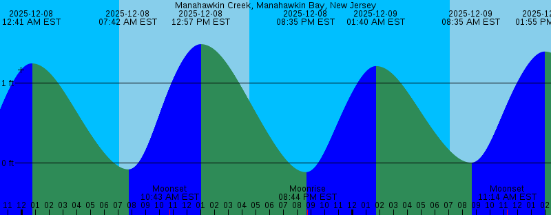 2025-12-07 04:32 PM EST Sunset 2025-12-07 07:29 PM EST Moonrise 2025-12-07 07:44 PM EST -0.17 feet Low Tide 2025-12-08 12:41 AM EST 1.25 feet High Tide 2025-12-08 07:05 AM EST Sunrise 2025-12-08 07:42 AM EST -0.08 feet Low Tide 2025-12-08 10:43 AM EST Moonset 2025-12-08 12:57 PM EST 1.49 feet High Tide 2025-12-08 04:32 PM EST Sunset 2025-12-08 08:35 PM EST -0.11 feet Low Tide 2025-12-08 08:44 PM EST Moonrise 2025-12-09 01:40 AM EST 1.21 feet High Tide 2025-12-09 07:06 AM EST Sunrise 2025-12-09 08:35 AM EST 0.01 feet Low Tide 2025-12-09 11:14 AM EST Moonset 2025-12-09 01:55 PM EST 1.39 feet High Tide 2025-12-09 04:32 PM EST Sunset 2025-12-09 09:28 PM EST -0.04 feet Low Tide 2025-12-09 09:55 PM EST Moonrise 2025-12-10 02:39 AM EST 1.19 feet High Tide 2025-12-10 07:07 AM EST Sunrise 2025-12-10 09:32 AM EST 0.10 feet Low Tide 2025-12-10 11:41 AM EST Moonset 2025-12-10 02:51 PM EST 1.31 feet High Tide 2025-12-10 04:32 PM EST Sunset 2025-12-10 10:24 PM EST 0.02 feet Low Tide 2025-12-10 11:02 PM EST Moonrise 2025-12-11 03:34 AM EST 1.18 feet High Tide 2025-12-11 07:07 AM EST Sunrise 2025-12-11 10:35 AM EST 0.17 feet Low Tide 2025-12-11 12:03 PM EST Moonset |