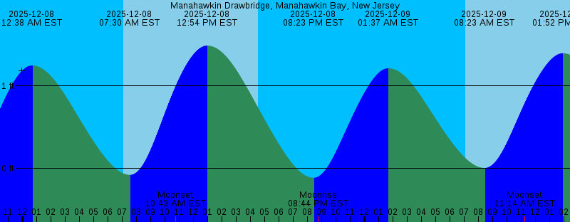 2025-12-07 04:32 PM EST Sunset 2025-12-07 07:29 PM EST Moonrise 2025-12-07 07:32 PM EST -0.17 feet Low Tide 2025-12-08 12:38 AM EST 1.25 feet High Tide 2025-12-08 07:05 AM EST Sunrise 2025-12-08 07:30 AM EST -0.08 feet Low Tide 2025-12-08 10:43 AM EST Moonset 2025-12-08 12:54 PM EST 1.49 feet High Tide 2025-12-08 04:32 PM EST Sunset 2025-12-08 08:23 PM EST -0.11 feet Low Tide 2025-12-08 08:44 PM EST Moonrise 2025-12-09 01:37 AM EST 1.21 feet High Tide 2025-12-09 07:06 AM EST Sunrise 2025-12-09 08:23 AM EST 0.01 feet Low Tide 2025-12-09 11:14 AM EST Moonset 2025-12-09 01:52 PM EST 1.39 feet High Tide 2025-12-09 04:32 PM EST Sunset 2025-12-09 09:16 PM EST -0.04 feet Low Tide 2025-12-09 09:55 PM EST Moonrise 2025-12-10 02:36 AM EST 1.19 feet High Tide 2025-12-10 07:06 AM EST Sunrise 2025-12-10 09:20 AM EST 0.10 feet Low Tide 2025-12-10 11:40 AM EST Moonset 2025-12-10 02:48 PM EST 1.31 feet High Tide 2025-12-10 04:32 PM EST Sunset 2025-12-10 10:12 PM EST 0.02 feet Low Tide 2025-12-10 11:02 PM EST Moonrise 2025-12-11 03:31 AM EST 1.18 feet High Tide 2025-12-11 07:07 AM EST Sunrise 2025-12-11 10:23 AM EST 0.17 feet Low Tide 2025-12-11 12:03 PM EST Moonset |