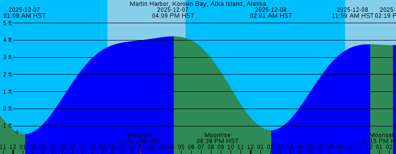 2025-12-07 01:10 AM HST -1.47 feet Low Tide 2025-12-07 09:32 AM HST Sunrise 2025-12-07 12:51 PM HST Moonset 2025-12-07 04:09 PM HST 4.23 feet High Tide 2025-12-07 05:25 PM HST Sunset 2025-12-07 08:39 PM HST Moonrise 2025-12-08 02:01 AM HST -1.26 feet Low Tide 2025-12-08 09:33 AM HST Sunrise 2025-12-08 11:59 AM HST 3.76 feet High Tide 2025-12-08 01:15 PM HST Moonset 2025-12-08 02:19 PM HST 3.71 feet Low Tide 2025-12-08 05:16 PM HST 3.81 feet High Tide 2025-12-08 05:24 PM HST Sunset 2025-12-08 10:07 PM HST Moonrise 2025-12-09 02:50 AM HST -0.89 feet Low Tide 2025-12-09 09:34 AM HST Sunrise 2025-12-09 11:47 AM HST 3.65 feet High Tide 2025-12-09 01:31 PM HST Moonset 2025-12-09 04:23 PM HST 3.24 feet Low Tide 2025-12-09 05:24 PM HST Sunset 2025-12-09 06:38 PM HST 3.31 feet High Tide 2025-12-09 11:31 PM HST Moonrise 2025-12-10 03:36 AM HST -0.39 feet Low Tide 2025-12-10 09:35 AM HST Sunrise 2025-12-10 11:55 AM HST 3.58 feet High Tide 2025-12-10 01:44 PM HST Moonset 2025-12-10 05:24 PM HST Sunset 2025-12-10 05:44 PM HST 2.67 feet Low Tide |