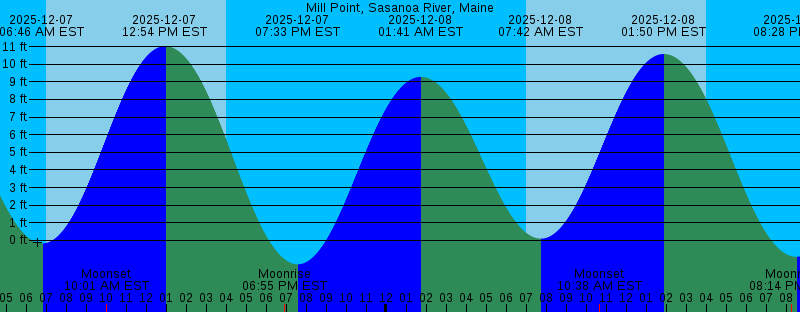 2025-12-07 06:46 AM EST -0.17 feet Low Tide 2025-12-07 06:59 AM EST Sunrise 2025-12-07 10:01 AM EST Moonset 2025-12-07 12:54 PM EST 11.02 feet High Tide 2025-12-07 04:01 PM EST Sunset 2025-12-07 06:55 PM EST Moonrise 2025-12-07 07:33 PM EST -1.36 feet Low Tide 2025-12-08 01:41 AM EST 9.28 feet High Tide 2025-12-08 07:00 AM EST Sunrise 2025-12-08 07:42 AM EST 0.10 feet Low Tide 2025-12-08 10:38 AM EST Moonset 2025-12-08 01:50 PM EST 10.58 feet High Tide 2025-12-08 04:01 PM EST Sunset 2025-12-08 08:14 PM EST Moonrise 2025-12-08 08:28 PM EST -0.93 feet Low Tide 2025-12-09 02:38 AM EST 9.04 feet High Tide 2025-12-09 07:01 AM EST Sunrise 2025-12-09 08:40 AM EST 0.43 feet Low Tide 2025-12-09 11:05 AM EST Moonset 2025-12-09 02:48 PM EST 10.03 feet High Tide 2025-12-09 04:01 PM EST Sunset 2025-12-09 09:24 PM EST -0.44 feet Low Tide 2025-12-09 09:29 PM EST Moonrise 2025-12-10 03:36 AM EST 8.82 feet High Tide 2025-12-10 07:02 AM EST Sunrise 2025-12-10 09:41 AM EST 0.76 feet Low Tide 2025-12-10 11:28 AM EST Moonset 2025-12-10 03:48 PM EST 9.43 feet High Tide 2025-12-10 04:01 PM EST Sunset 2025-12-10 10:21 PM EST 0.05 feet Low Tide 2025-12-10 10:39 PM EST Moonrise |