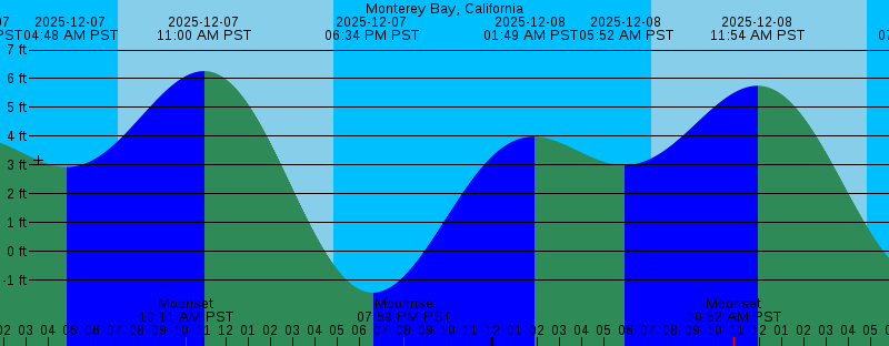2025-12-07 12:53 AM PST 3.91 feet High Tide 2025-12-07 04:48 AM PST 2.93 feet Low Tide 2025-12-07 07:08 AM PST Sunrise 2025-12-07 10:11 AM PST Moonset 2025-12-07 11:00 AM PST 6.26 feet High Tide 2025-12-07 04:51 PM PST Sunset 2025-12-07 06:34 PM PST -1.44 feet Low Tide 2025-12-07 07:59 PM PST Moonrise 2025-12-08 01:49 AM PST 3.99 feet High Tide 2025-12-08 05:52 AM PST 3.00 feet Low Tide 2025-12-08 07:09 AM PST Sunrise 2025-12-08 10:52 AM PST Moonset 2025-12-08 11:54 AM PST 5.75 feet High Tide 2025-12-08 04:51 PM PST Sunset 2025-12-08 07:26 PM PST -1.00 feet Low Tide 2025-12-08 09:12 PM PST Moonrise 2025-12-09 02:44 AM PST 4.11 feet High Tide 2025-12-09 07:09 AM PST 2.99 feet Low Tide 2025-12-09 07:09 AM PST Sunrise 2025-12-09 11:25 AM PST Moonset 2025-12-09 12:53 PM PST 5.13 feet High Tide 2025-12-09 04:51 PM PST Sunset 2025-12-09 08:17 PM PST -0.48 feet Low Tide 2025-12-09 10:20 PM PST Moonrise 2025-12-10 03:36 AM PST 4.29 feet High Tide 2025-12-10 07:10 AM PST Sunrise 2025-12-10 08:36 AM PST 2.83 feet Low Tide 2025-12-10 11:52 AM PST Moonset 2025-12-10 02:00 PM PST 4.45 feet High Tide 2025-12-10 04:51 PM PST Sunset 2025-12-10 09:07 PM PST 0.09 feet Low Tide |