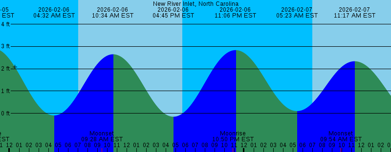 2026-02-05 10:21 PM EST 2.91 feet High Tide 2026-02-06 04:32 AM EST -0.09 feet Low Tide 2026-02-06 07:03 AM EST Sunrise 2026-02-06 09:28 AM EST Moonset 2026-02-06 10:34 AM EST 2.65 feet High Tide 2026-02-06 04:45 PM EST -0.15 feet Low Tide 2026-02-06 05:43 PM EST Sunset 2026-02-06 10:50 PM EST Moonrise 2026-02-06 11:06 PM EST 2.84 feet High Tide 2026-02-07 05:23 AM EST 0.10 feet Low Tide 2026-02-07 07:02 AM EST Sunrise 2026-02-07 09:54 AM EST Moonset 2026-02-07 11:17 AM EST 2.34 feet High Tide 2026-02-07 05:24 PM EST -0.01 feet Low Tide 2026-02-07 05:44 PM EST Sunset 2026-02-07 11:50 PM EST Moonrise 2026-02-07 11:55 PM EST 2.74 feet High Tide 2026-02-08 06:19 AM EST 0.28 feet Low Tide 2026-02-08 07:01 AM EST Sunrise 2026-02-08 10:23 AM EST Moonset 2026-02-08 12:02 PM EST 2.06 feet High Tide 2026-02-08 05:45 PM EST Sunset 2026-02-08 06:06 PM EST 0.12 feet Low Tide 2026-02-09 12:47 AM EST 2.66 feet High Tide 2026-02-09 12:49 AM EST Moonrise 2026-02-09 07:00 AM EST Sunrise 2026-02-09 07:20 AM EST 0.41 feet Low Tide 2026-02-09 07:44 AM EST Last Quarter 2026-02-09 10:55 AM EST Moonset 2026-02-09 12:54 PM EST 1.85 feet High Tide 2026-02-09 05:46 PM EST Sunset 2026-02-09 06:54 PM EST 0.22 feet Low Tide |