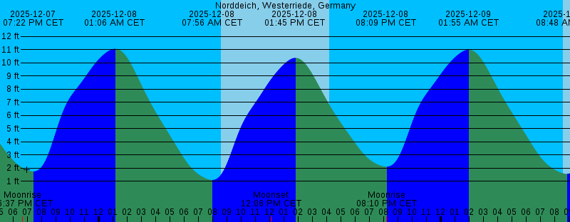 2025-12-07 11:39 AM CET Moonset 2025-12-07 12:54 PM CET 10.68 feet High Tide 2025-12-07 04:11 PM CET Sunset 2025-12-07 06:37 PM CET Moonrise 2025-12-07 07:22 PM CET 1.74 feet Low Tide 2025-12-08 01:06 AM CET 11.06 feet High Tide 2025-12-08 07:56 AM CET 1.09 feet Low Tide 2025-12-08 08:34 AM CET Sunrise 2025-12-08 12:06 PM CET Moonset 2025-12-08 01:45 PM CET 10.37 feet High Tide 2025-12-08 04:11 PM CET Sunset 2025-12-08 08:09 PM CET 2.10 feet Low Tide 2025-12-08 08:10 PM CET Moonrise 2025-12-09 01:55 AM CET 11.00 feet High Tide 2025-12-09 08:36 AM CET Sunrise 2025-12-09 08:48 AM CET 1.55 feet Low Tide 2025-12-09 12:23 PM CET Moonset 2025-12-09 02:37 PM CET 9.96 feet High Tide 2025-12-09 04:11 PM CET Sunset 2025-12-09 08:55 PM CET 2.70 feet Low Tide 2025-12-09 09:39 PM CET Moonrise 2025-12-10 02:43 AM CET 10.82 feet High Tide 2025-12-10 08:37 AM CET Sunrise 2025-12-10 09:41 AM CET 2.24 feet Low Tide 2025-12-10 12:35 PM CET Moonset 2025-12-10 03:27 PM CET 9.58 feet High Tide 2025-12-10 04:11 PM CET Sunset 2025-12-10 09:41 PM CET 3.32 feet Low Tide 2025-12-10 11:02 PM CET Moonrise 2025-12-11 03:33 AM CET 10.64 feet High Tide 2025-12-11 08:38 AM CET Sunrise 2025-12-11 10:33 AM CET 2.85 feet Low Tide |