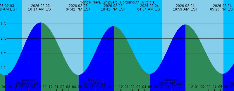 2026-02-03 04:08 AM EST -0.50 feet Low Tide 2026-02-03 07:05 AM EST Sunrise 2026-02-03 08:09 AM EST Moonset 2026-02-03 10:14 AM EST 3.08 feet High Tide 2026-02-03 04:42 PM EST -0.47 feet Low Tide 2026-02-03 05:32 PM EST Sunset 2026-02-03 07:41 PM EST Moonrise 2026-02-03 10:41 PM EST 2.83 feet High Tide 2026-02-04 04:54 AM EST -0.39 feet Low Tide 2026-02-04 07:04 AM EST Sunrise 2026-02-04 08:34 AM EST Moonset 2026-02-04 10:59 AM EST 2.94 feet High Tide 2026-02-04 05:20 PM EST -0.39 feet Low Tide 2026-02-04 05:33 PM EST Sunset 2026-02-04 08:46 PM EST Moonrise 2026-02-04 11:26 PM EST 2.84 feet High Tide 2026-02-05 05:39 AM EST -0.24 feet Low Tide 2026-02-05 07:03 AM EST Sunrise 2026-02-05 08:58 AM EST Moonset 2026-02-05 11:41 AM EST 2.77 feet High Tide 2026-02-05 05:34 PM EST Sunset 2026-02-05 05:57 PM EST -0.27 feet Low Tide 2026-02-05 09:48 PM EST Moonrise 2026-02-06 12:09 AM EST 2.79 feet High Tide 2026-02-06 06:25 AM EST -0.06 feet Low Tide 2026-02-06 07:02 AM EST Sunrise 2026-02-06 09:22 AM EST Moonset 2026-02-06 12:21 PM EST 2.58 feet High Tide 2026-02-06 05:36 PM EST Sunset 2026-02-06 06:35 PM EST -0.13 feet Low Tide 2026-02-06 10:49 PM EST Moonrise 2026-02-07 12:50 AM EST 2.71 feet High Tide |