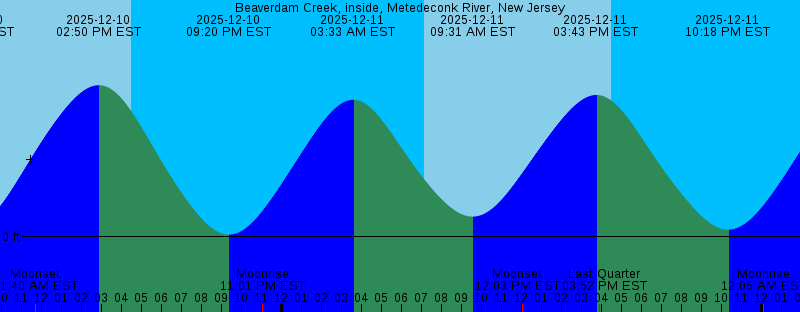 2025-12-08 08:43 PM EST Moonrise 2025-12-09 01:39 AM EST 0.27 feet High Tide 2025-12-09 07:06 AM EST Sunrise 2025-12-09 07:31 AM EST 0.00 feet Low Tide 2025-12-09 11:15 AM EST Moonset 2025-12-09 01:54 PM EST 0.31 feet High Tide 2025-12-09 04:30 PM EST Sunset 2025-12-09 08:24 PM EST -0.01 feet Low Tide 2025-12-09 09:54 PM EST Moonrise 2025-12-10 02:38 AM EST 0.26 feet High Tide 2025-12-10 07:07 AM EST Sunrise 2025-12-10 08:28 AM EST 0.02 feet Low Tide 2025-12-10 11:40 AM EST Moonset 2025-12-10 02:50 PM EST 0.29 feet High Tide 2025-12-10 04:30 PM EST Sunset 2025-12-10 09:20 PM EST 0.00 feet Low Tide 2025-12-10 11:01 PM EST Moonrise 2025-12-11 03:33 AM EST 0.26 feet High Tide 2025-12-11 07:08 AM EST Sunrise 2025-12-11 09:31 AM EST 0.04 feet Low Tide 2025-12-11 12:03 PM EST Moonset 2025-12-11 03:43 PM EST 0.27 feet High Tide 2025-12-11 03:52 PM EST Last Quarter 2025-12-11 04:30 PM EST Sunset 2025-12-11 10:18 PM EST 0.01 feet Low Tide 2025-12-12 12:05 AM EST Moonrise 2025-12-12 04:26 AM EST 0.26 feet High Tide 2025-12-12 07:09 AM EST Sunrise 2025-12-12 10:38 AM EST 0.05 feet Low Tide 2025-12-12 12:23 PM EST Moonset 2025-12-12 04:31 PM EST Sunset 2025-12-12 04:34 PM EST 0.25 feet High Tide |