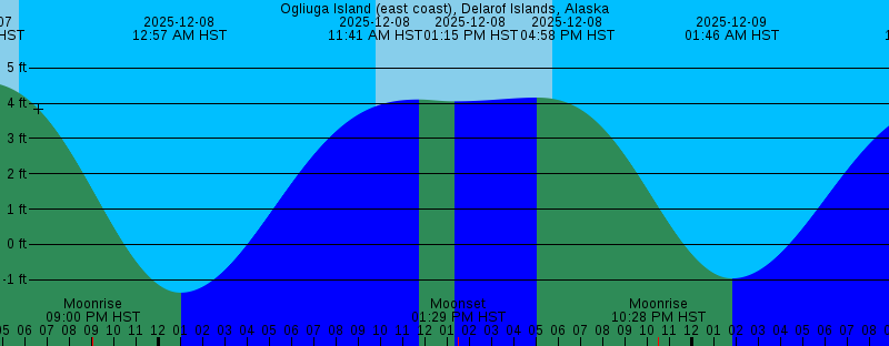 2025-12-07 09:46 AM HST Sunrise 2025-12-07 01:05 PM HST Moonset 2025-12-07 03:51 PM HST 4.61 feet High Tide 2025-12-07 05:45 PM HST Sunset 2025-12-07 09:00 PM HST Moonrise 2025-12-08 12:57 AM HST -1.37 feet Low Tide 2025-12-08 09:47 AM HST Sunrise 2025-12-08 11:41 AM HST 4.11 feet High Tide 2025-12-08 01:15 PM HST 4.06 feet Low Tide 2025-12-08 01:29 PM HST Moonset 2025-12-08 04:58 PM HST 4.16 feet High Tide 2025-12-08 05:45 PM HST Sunset 2025-12-08 10:28 PM HST Moonrise 2025-12-09 01:46 AM HST -0.97 feet Low Tide 2025-12-09 09:48 AM HST Sunrise 2025-12-09 11:29 AM HST 3.98 feet High Tide 2025-12-09 01:47 PM HST Moonset 2025-12-09 03:19 PM HST 3.54 feet Low Tide 2025-12-09 05:45 PM HST Sunset 2025-12-09 06:20 PM HST 3.61 feet High Tide 2025-12-09 11:50 PM HST Moonrise 2025-12-10 02:32 AM HST -0.43 feet Low Tide 2025-12-10 09:50 AM HST Sunrise 2025-12-10 11:37 AM HST 3.91 feet High Tide 2025-12-10 02:00 PM HST Moonset 2025-12-10 04:40 PM HST 2.91 feet Low Tide 2025-12-10 05:44 PM HST Sunset 2025-12-10 08:01 PM HST 3.03 feet High Tide 2025-12-11 01:08 AM HST Moonrise 2025-12-11 03:13 AM HST 0.20 feet Low Tide |