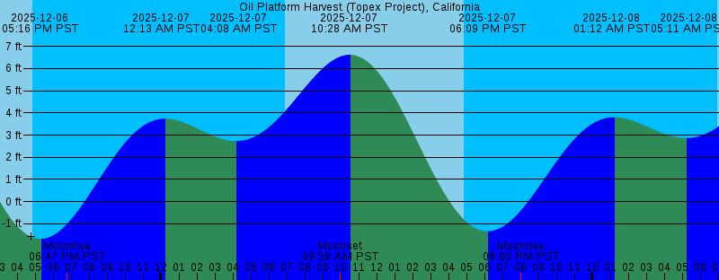 2025-12-06 04:52 PM PST Sunset 2025-12-06 05:16 PM PST -1.68 feet Low Tide 2025-12-06 06:47 PM PST Moonrise 2025-12-07 12:13 AM PST 3.74 feet High Tide 2025-12-07 04:08 AM PST 2.73 feet Low Tide 2025-12-07 06:56 AM PST Sunrise 2025-12-07 09:58 AM PST Moonset 2025-12-07 10:28 AM PST 6.62 feet High Tide 2025-12-07 04:52 PM PST Sunset 2025-12-07 06:09 PM PST -1.34 feet Low Tide 2025-12-07 08:00 PM PST Moonrise 2025-12-08 01:12 AM PST 3.80 feet High Tide 2025-12-08 05:11 AM PST 2.86 feet Low Tide 2025-12-08 06:57 AM PST Sunrise 2025-12-08 10:40 AM PST Moonset 2025-12-08 11:21 AM PST 6.04 feet High Tide 2025-12-08 04:52 PM PST Sunset 2025-12-08 07:02 PM PST -0.88 feet Low Tide 2025-12-08 09:11 PM PST Moonrise 2025-12-09 02:12 AM PST 3.95 feet High Tide 2025-12-09 06:29 AM PST 2.95 feet Low Tide 2025-12-09 06:57 AM PST Sunrise 2025-12-09 11:15 AM PST Moonset 2025-12-09 12:19 PM PST 5.33 feet High Tide 2025-12-09 04:52 PM PST Sunset 2025-12-09 07:56 PM PST -0.36 feet Low Tide 2025-12-09 10:18 PM PST Moonrise 2025-12-10 03:09 AM PST 4.18 feet High Tide 2025-12-10 06:58 AM PST Sunrise 2025-12-10 08:04 AM PST 2.88 feet Low Tide 2025-12-10 11:44 AM PST Moonset 2025-12-10 01:26 PM PST 4.57 feet High Tide |