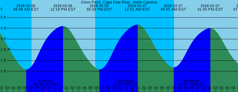 2026-02-06 06:08 AM EST 0.16 feet Low Tide 2026-02-06 07:04 AM EST Sunrise 2026-02-06 09:31 AM EST Moonset 2026-02-06 12:19 PM EST 4.21 feet High Tide 2026-02-06 05:47 PM EST Sunset 2026-02-06 06:26 PM EST 0.17 feet Low Tide 2026-02-06 10:52 PM EST Moonrise 2026-02-07 12:51 AM EST 4.34 feet High Tide 2026-02-07 06:55 AM EST 0.36 feet Low Tide 2026-02-07 07:03 AM EST Sunrise 2026-02-07 09:57 AM EST Moonset 2026-02-07 01:05 PM EST 4.01 feet High Tide 2026-02-07 05:48 PM EST Sunset 2026-02-07 07:05 PM EST 0.32 feet Low Tide 2026-02-07 11:51 PM EST Moonrise 2026-02-08 01:38 AM EST 4.25 feet High Tide 2026-02-08 07:02 AM EST Sunrise 2026-02-08 07:44 AM EST 0.54 feet Low Tide 2026-02-08 10:26 AM EST Moonset 2026-02-08 01:52 PM EST 3.84 feet High Tide 2026-02-08 05:49 PM EST Sunset 2026-02-08 07:47 PM EST 0.44 feet Low Tide 2026-02-09 12:50 AM EST Moonrise 2026-02-09 02:27 AM EST 4.16 feet High Tide 2026-02-09 07:02 AM EST Sunrise 2026-02-09 07:44 AM EST Last Quarter 2026-02-09 08:36 AM EST 0.66 feet Low Tide 2026-02-09 10:59 AM EST Moonset 2026-02-09 02:42 PM EST 3.71 feet High Tide 2026-02-09 05:50 PM EST Sunset 2026-02-09 08:34 PM EST 0.53 feet Low Tide |