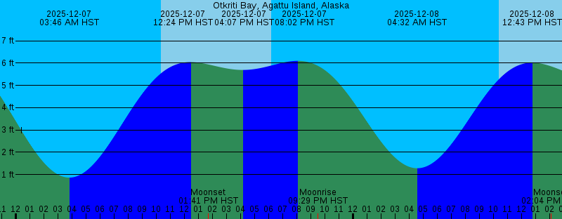2025-12-06 07:59 PM HST Moonrise 2025-12-07 03:46 AM HST 0.87 feet Low Tide 2025-12-07 10:21 AM HST Sunrise 2025-12-07 12:24 PM HST 6.04 feet High Tide 2025-12-07 01:41 PM HST Moonset 2025-12-07 04:07 PM HST 5.69 feet Low Tide 2025-12-07 06:12 PM HST Sunset 2025-12-07 08:02 PM HST 6.10 feet High Tide 2025-12-07 09:29 PM HST Moonrise 2025-12-08 04:32 AM HST 1.29 feet Low Tide 2025-12-08 10:22 AM HST Sunrise 2025-12-08 12:43 PM HST 6.02 feet High Tide 2025-12-08 02:04 PM HST Moonset 2025-12-08 05:32 PM HST 5.25 feet Low Tide 2025-12-08 06:12 PM HST Sunset 2025-12-08 09:15 PM HST 5.63 feet High Tide 2025-12-08 10:57 PM HST Moonrise 2025-12-09 05:15 AM HST 1.82 feet Low Tide 2025-12-09 10:23 AM HST Sunrise 2025-12-09 01:05 PM HST 6.03 feet High Tide 2025-12-09 02:20 PM HST Moonset 2025-12-09 06:12 PM HST Sunset 2025-12-09 06:50 PM HST 4.72 feet Low Tide 2025-12-09 10:37 PM HST 5.12 feet High Tide 2025-12-10 12:21 AM HST Moonrise 2025-12-10 05:54 AM HST 2.44 feet Low Tide 2025-12-10 10:25 AM HST Sunrise 2025-12-10 01:27 PM HST 6.05 feet High Tide 2025-12-10 02:32 PM HST Moonset 2025-12-10 06:11 PM HST Sunset |