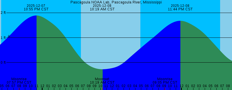 2025-12-07 09:22 AM CST -0.44 feet Low Tide 2025-12-07 09:34 AM CST Moonset 2025-12-07 04:53 PM CST Sunset 2025-12-07 07:57 PM CST Moonrise 2025-12-07 10:55 PM CST 1.89 feet High Tide 2025-12-08 06:38 AM CST Sunrise 2025-12-08 10:19 AM CST Moonset 2025-12-08 10:19 AM CST -0.27 feet Low Tide 2025-12-08 04:53 PM CST Sunset 2025-12-08 09:05 PM CST Moonrise 2025-12-08 11:44 PM CST 1.68 feet High Tide 2025-12-09 06:39 AM CST Sunrise 2025-12-09 10:57 AM CST Moonset 2025-12-09 10:59 AM CST -0.06 feet Low Tide 2025-12-09 04:53 PM CST Sunset 2025-12-09 10:09 PM CST Moonrise 2025-12-10 12:35 AM CST 1.42 feet High Tide 2025-12-10 06:40 AM CST Sunrise 2025-12-10 11:13 AM CST 0.16 feet Low Tide 2025-12-10 11:29 AM CST Moonset 2025-12-10 04:54 PM CST Sunset 2025-12-10 11:09 PM CST Moonrise 2025-12-11 01:23 AM CST 1.15 feet High Tide 2025-12-11 06:40 AM CST Sunrise |