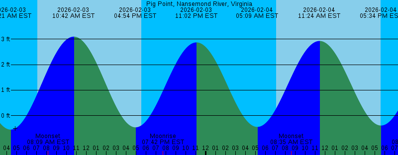 2026-02-03 04:21 AM EST -0.55 feet Low Tide 2026-02-03 07:06 AM EST Sunrise 2026-02-03 08:09 AM EST Moonset 2026-02-03 10:42 AM EST 3.10 feet High Tide 2026-02-03 04:54 PM EST -0.46 feet Low Tide 2026-02-03 05:33 PM EST Sunset 2026-02-03 07:42 PM EST Moonrise 2026-02-03 11:02 PM EST 2.87 feet High Tide 2026-02-04 05:09 AM EST -0.44 feet Low Tide 2026-02-04 07:05 AM EST Sunrise 2026-02-04 08:35 AM EST Moonset 2026-02-04 11:24 AM EST 2.93 feet High Tide 2026-02-04 05:34 PM EST Sunset 2026-02-04 05:34 PM EST -0.39 feet Low Tide 2026-02-04 08:46 PM EST Moonrise 2026-02-04 11:46 PM EST 2.86 feet High Tide 2026-02-05 05:55 AM EST -0.29 feet Low Tide 2026-02-05 07:04 AM EST Sunrise 2026-02-05 08:59 AM EST Moonset 2026-02-05 12:05 PM EST 2.72 feet High Tide 2026-02-05 05:35 PM EST Sunset 2026-02-05 06:14 PM EST -0.27 feet Low Tide 2026-02-05 09:49 PM EST Moonrise 2026-02-06 12:29 AM EST 2.79 feet High Tide 2026-02-06 06:40 AM EST -0.09 feet Low Tide 2026-02-06 07:03 AM EST Sunrise 2026-02-06 09:22 AM EST Moonset 2026-02-06 12:45 PM EST 2.49 feet High Tide 2026-02-06 05:36 PM EST Sunset 2026-02-06 06:52 PM EST -0.13 feet Low Tide 2026-02-06 10:50 PM EST Moonrise 2026-02-07 01:12 AM EST 2.69 feet High Tide |
