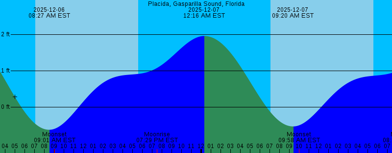 2025-12-06 07:04 AM EST Sunrise 2025-12-06 08:27 AM EST -0.63 feet Low Tide 2025-12-06 09:01 AM EST Moonset 2025-12-06 05:35 PM EST Sunset 2025-12-06 07:29 PM EST Moonrise 2025-12-07 12:16 AM EST 1.96 feet High Tide 2025-12-07 07:05 AM EST Sunrise 2025-12-07 09:20 AM EST -0.54 feet Low Tide 2025-12-07 09:58 AM EST Moonset 2025-12-07 05:36 PM EST Sunset 2025-12-07 08:39 PM EST Moonrise 2025-12-08 01:08 AM EST 1.83 feet High Tide 2025-12-08 07:05 AM EST Sunrise 2025-12-08 10:12 AM EST -0.40 feet Low Tide 2025-12-08 10:46 AM EST Moonset 2025-12-08 05:36 PM EST Sunset 2025-12-08 09:45 PM EST Moonrise 2025-12-09 02:06 AM EST 1.64 feet High Tide 2025-12-09 07:06 AM EST Sunrise 2025-12-09 11:02 AM EST -0.24 feet Low Tide 2025-12-09 11:25 AM EST Moonset 2025-12-09 05:36 PM EST Sunset 2025-12-09 06:34 PM EST 0.89 feet High Tide 2025-12-09 09:11 PM EST 0.86 feet Low Tide 2025-12-09 10:48 PM EST Moonrise 2025-12-10 03:13 AM EST 1.41 feet High Tide |