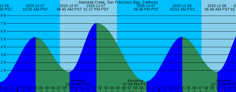 2025-12-06 08:57 PM PST -0.48 feet Low Tide 2025-12-07 03:00 AM PST 5.26 feet High Tide 2025-12-07 07:10 AM PST Sunrise 2025-12-07 08:45 AM PST 0.84 feet Low Tide 2025-12-07 10:14 AM PST Moonset 2025-12-07 01:17 PM PST 7.05 feet High Tide 2025-12-07 04:49 PM PST Sunset 2025-12-07 07:58 PM PST Moonrise 2025-12-07 09:48 PM PST -0.39 feet Low Tide 2025-12-08 03:53 AM PST 5.29 feet High Tide 2025-12-08 07:11 AM PST Sunrise 2025-12-08 09:48 AM PST 0.84 feet Low Tide 2025-12-08 10:54 AM PST Moonset 2025-12-08 02:12 PM PST 6.55 feet High Tide 2025-12-08 04:49 PM PST Sunset 2025-12-08 09:11 PM PST Moonrise 2025-12-08 10:41 PM PST -0.26 feet Low Tide 2025-12-09 04:45 AM PST 5.36 feet High Tide 2025-12-09 07:12 AM PST Sunrise 2025-12-09 10:59 AM PST 0.82 feet Low Tide 2025-12-09 11:26 AM PST Moonset 2025-12-09 03:10 PM PST 5.93 feet High Tide 2025-12-09 04:50 PM PST Sunset 2025-12-09 10:19 PM PST Moonrise 2025-12-09 11:33 PM PST -0.11 feet Low Tide 2025-12-10 05:35 AM PST 5.48 feet High Tide 2025-12-10 07:13 AM PST Sunrise 2025-12-10 11:53 AM PST Moonset 2025-12-10 12:17 PM PST 0.75 feet Low Tide 2025-12-10 04:16 PM PST 5.25 feet High Tide 2025-12-10 04:50 PM PST Sunset |