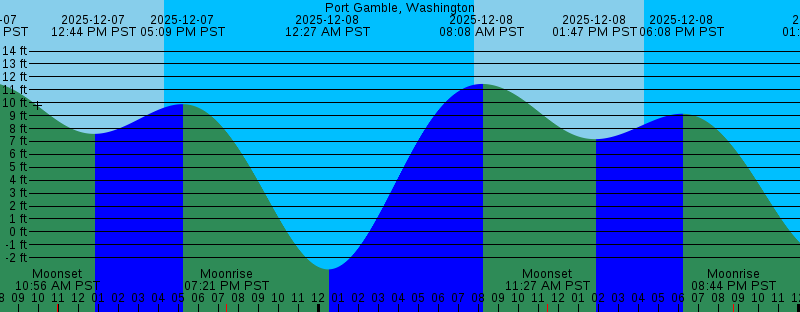 2025-12-07 07:19 AM PST 11.60 feet High Tide 2025-12-07 07:45 AM PST Sunrise 2025-12-07 10:56 AM PST Moonset 2025-12-07 12:44 PM PST 7.59 feet Low Tide 2025-12-07 04:17 PM PST Sunset 2025-12-07 05:09 PM PST 9.89 feet High Tide 2025-12-07 07:21 PM PST Moonrise 2025-12-08 12:27 AM PST -2.91 feet Low Tide 2025-12-08 07:46 AM PST Sunrise 2025-12-08 08:08 AM PST 11.45 feet High Tide 2025-12-08 11:27 AM PST Moonset 2025-12-08 01:47 PM PST 7.18 feet Low Tide 2025-12-08 04:17 PM PST Sunset 2025-12-08 06:08 PM PST 9.14 feet High Tide 2025-12-08 08:44 PM PST Moonrise 2025-12-09 01:16 AM PST -1.86 feet Low Tide 2025-12-09 07:47 AM PST Sunrise 2025-12-09 08:56 AM PST 11.26 feet High Tide 2025-12-09 11:50 AM PST Moonset 2025-12-09 02:56 PM PST 6.55 feet Low Tide 2025-12-09 04:17 PM PST Sunset 2025-12-09 07:14 PM PST 8.28 feet High Tide 2025-12-09 10:03 PM PST Moonrise 2025-12-10 02:07 AM PST -0.52 feet Low Tide 2025-12-10 07:48 AM PST Sunrise 2025-12-10 09:41 AM PST 11.06 feet High Tide 2025-12-10 12:08 PM PST Moonset 2025-12-10 04:08 PM PST 5.67 feet Low Tide 2025-12-10 04:17 PM PST Sunset 2025-12-10 08:30 PM PST 7.44 feet High Tide 2025-12-10 11:16 PM PST Moonrise |