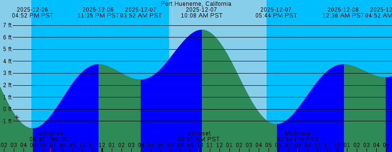 2025-12-06 04:46 PM PST Sunset 2025-12-06 04:52 PM PST -1.58 feet Low Tide 2025-12-06 06:42 PM PST Moonrise 2025-12-06 11:35 PM PST 3.76 feet High Tide 2025-12-07 03:52 AM PST 2.48 feet Low Tide 2025-12-07 06:49 AM PST Sunrise 2025-12-07 09:51 AM PST Moonset 2025-12-07 10:08 AM PST 6.64 feet High Tide 2025-12-07 04:47 PM PST Sunset 2025-12-07 05:44 PM PST -1.23 feet Low Tide 2025-12-07 07:55 PM PST Moonrise 2025-12-08 12:36 AM PST 3.76 feet High Tide 2025-12-08 04:52 AM PST 2.68 feet Low Tide 2025-12-08 06:50 AM PST Sunrise 2025-12-08 10:34 AM PST Moonset 2025-12-08 11:01 AM PST 6.05 feet High Tide 2025-12-08 04:47 PM PST Sunset 2025-12-08 06:38 PM PST -0.77 feet Low Tide 2025-12-08 09:06 PM PST Moonrise 2025-12-09 01:39 AM PST 3.85 feet High Tide 2025-12-09 06:05 AM PST 2.83 feet Low Tide 2025-12-09 06:51 AM PST Sunrise 2025-12-09 11:08 AM PST Moonset 2025-12-09 11:59 AM PST 5.33 feet High Tide 2025-12-09 04:47 PM PST Sunset 2025-12-09 07:33 PM PST -0.26 feet Low Tide 2025-12-09 10:12 PM PST Moonrise 2025-12-10 02:42 AM PST 4.05 feet High Tide 2025-12-10 06:52 AM PST Sunrise 2025-12-10 07:38 AM PST 2.83 feet Low Tide 2025-12-10 11:37 AM PST Moonset 2025-12-10 01:07 PM PST 4.57 feet High Tide |