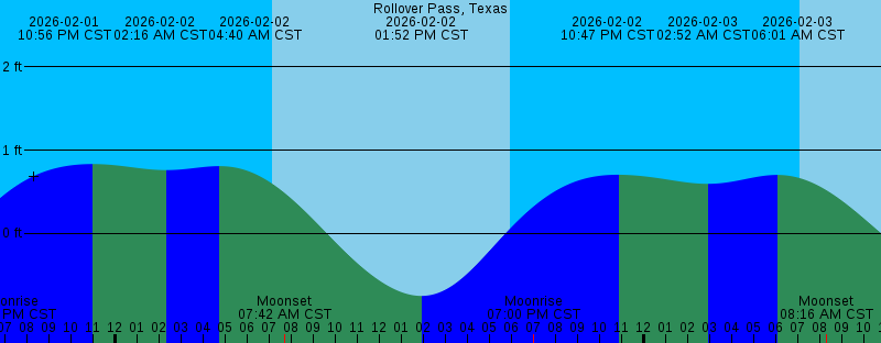 2026-02-01 10:56 PM CST 0.83 feet High Tide 2026-02-02 02:16 AM CST 0.76 feet Low Tide 2026-02-02 04:40 AM CST 0.81 feet High Tide 2026-02-02 07:07 AM CST Sunrise 2026-02-02 07:42 AM CST Moonset 2026-02-02 01:52 PM CST -0.75 feet Low Tide 2026-02-02 05:56 PM CST Sunset 2026-02-02 07:00 PM CST Moonrise 2026-02-02 10:47 PM CST 0.71 feet High Tide 2026-02-03 02:52 AM CST 0.60 feet Low Tide 2026-02-03 06:01 AM CST 0.70 feet High Tide 2026-02-03 07:06 AM CST Sunrise 2026-02-03 08:16 AM CST Moonset 2026-02-03 02:36 PM CST -0.53 feet Low Tide 2026-02-03 05:57 PM CST Sunset 2026-02-03 08:02 PM CST Moonrise 2026-02-03 10:24 PM CST 0.59 feet High Tide 2026-02-04 03:32 AM CST 0.39 feet Low Tide 2026-02-04 07:05 AM CST Sunrise 2026-02-04 07:23 AM CST 0.58 feet High Tide 2026-02-04 08:46 AM CST Moonset 2026-02-04 03:16 PM CST -0.26 feet Low Tide 2026-02-04 05:58 PM CST Sunset 2026-02-04 09:02 PM CST Moonrise 2026-02-04 10:01 PM CST 0.51 feet High Tide 2026-02-05 04:15 AM CST 0.17 feet Low Tide 2026-02-05 07:04 AM CST Sunrise 2026-02-05 08:54 AM CST 0.46 feet High Tide 2026-02-05 09:15 AM CST Moonset 2026-02-05 03:52 PM CST 0.02 feet Low Tide 2026-02-05 05:59 PM CST Sunset |