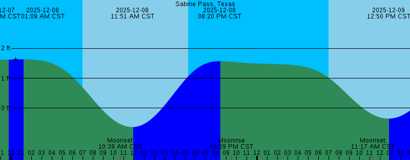 2025-12-07 05:16 PM CST Sunset 2025-12-07 07:17 PM CST 1.72 feet High Tide 2025-12-07 08:20 PM CST Moonrise 2025-12-07 11:43 PM CST 1.62 feet Low Tide 2025-12-08 01:09 AM CST 1.64 feet High Tide 2025-12-08 06:58 AM CST Sunrise 2025-12-08 10:39 AM CST Moonset 2025-12-08 11:51 AM CST -0.63 feet Low Tide 2025-12-08 05:16 PM CST Sunset 2025-12-08 08:20 PM CST 1.57 feet High Tide 2025-12-08 09:29 PM CST Moonrise 2025-12-09 06:59 AM CST Sunrise 2025-12-09 11:17 AM CST Moonset 2025-12-09 12:50 PM CST -0.35 feet Low Tide 2025-12-09 05:16 PM CST Sunset 2025-12-09 09:06 PM CST 1.44 feet High Tide 2025-12-09 10:32 PM CST Moonrise 2025-12-10 07:00 AM CST Sunrise 2025-12-10 11:50 AM CST Moonset 2025-12-10 01:54 PM CST -0.03 feet Low Tide 2025-12-10 05:16 PM CST Sunset 2025-12-10 09:33 PM CST 1.32 feet High Tide 2025-12-10 11:32 PM CST Moonrise 2025-12-11 05:29 AM CST 0.90 feet Low Tide 2025-12-11 07:00 AM CST Sunrise 2025-12-11 07:07 AM CST 0.94 feet High Tide 2025-12-11 12:19 PM CST Moonset |