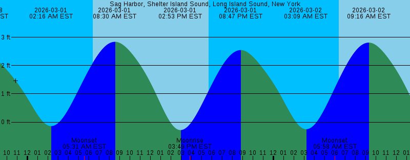 2026-03-01 02:16 AM EST -0.14 feet Low Tide 2026-03-01 05:31 AM EST Moonset 2026-03-01 06:23 AM EST Sunrise 2026-03-01 08:30 AM EST 2.84 feet High Tide 2026-03-01 02:53 PM EST -0.28 feet Low Tide 2026-03-01 03:49 PM EST Moonrise 2026-03-01 05:40 PM EST Sunset 2026-03-01 08:47 PM EST 2.55 feet High Tide 2026-03-02 03:09 AM EST -0.25 feet Low Tide 2026-03-02 05:58 AM EST Moonset 2026-03-02 06:21 AM EST Sunrise 2026-03-02 09:16 AM EST 2.81 feet High Tide 2026-03-02 03:38 PM EST -0.32 feet Low Tide 2026-03-02 05:01 PM EST Moonrise 2026-03-02 05:41 PM EST Sunset 2026-03-02 09:32 PM EST 2.71 feet High Tide 2026-03-03 03:57 AM EST -0.31 feet Low Tide 2026-03-03 06:20 AM EST Sunrise 2026-03-03 06:21 AM EST Moonset 2026-03-03 06:39 AM EST Full Moon 2026-03-03 10:00 AM EST 2.74 feet High Tide 2026-03-03 04:19 PM EST -0.29 feet Low Tide 2026-03-03 05:42 PM EST Sunset 2026-03-03 06:10 PM EST Moonrise 2026-03-03 10:17 PM EST 2.83 feet High Tide 2026-03-04 04:43 AM EST -0.31 feet Low Tide 2026-03-04 06:18 AM EST Sunrise 2026-03-04 06:43 AM EST Moonset 2026-03-04 10:43 AM EST 2.63 feet High Tide 2026-03-04 04:59 PM EST -0.21 feet Low Tide 2026-03-04 05:43 PM EST Sunset 2026-03-04 07:16 PM EST Moonrise |
