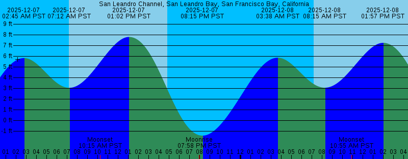 2025-12-07 02:45 AM PST 5.81 feet High Tide 2025-12-07 07:11 AM PST Sunrise 2025-12-07 07:12 AM PST 3.04 feet Low Tide 2025-12-07 10:15 AM PST Moonset 2025-12-07 01:02 PM PST 7.79 feet High Tide 2025-12-07 04:49 PM PST Sunset 2025-12-07 07:58 PM PST Moonrise 2025-12-07 08:15 PM PST -1.43 feet Low Tide 2025-12-08 03:38 AM PST 5.85 feet High Tide 2025-12-08 07:12 AM PST Sunrise 2025-12-08 08:15 AM PST 3.05 feet Low Tide 2025-12-08 10:55 AM PST Moonset 2025-12-08 01:57 PM PST 7.23 feet High Tide 2025-12-08 04:49 PM PST Sunset 2025-12-08 09:08 PM PST -0.96 feet Low Tide 2025-12-08 09:11 PM PST Moonrise 2025-12-09 04:30 AM PST 5.92 feet High Tide 2025-12-09 07:12 AM PST Sunrise 2025-12-09 09:26 AM PST 2.96 feet Low Tide 2025-12-09 11:27 AM PST Moonset 2025-12-09 02:55 PM PST 6.55 feet High Tide 2025-12-09 04:50 PM PST Sunset 2025-12-09 10:00 PM PST -0.41 feet Low Tide 2025-12-09 10:20 PM PST Moonrise 2025-12-10 05:20 AM PST 6.05 feet High Tide 2025-12-10 07:13 AM PST Sunrise 2025-12-10 10:44 AM PST 2.73 feet Low Tide 2025-12-10 11:54 AM PST Moonset 2025-12-10 04:01 PM PST 5.80 feet High Tide 2025-12-10 04:50 PM PST Sunset |