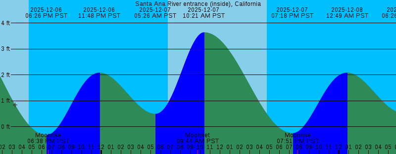 2025-12-06 04:43 PM PST Sunset 2025-12-06 06:26 PM PST -0.32 feet Low Tide 2025-12-06 06:39 PM PST Moonrise 2025-12-06 11:48 PM PST 2.08 feet High Tide 2025-12-07 05:26 AM PST 0.50 feet Low Tide 2025-12-07 06:43 AM PST Sunrise 2025-12-07 09:44 AM PST Moonset 2025-12-07 10:21 AM PST 3.64 feet High Tide 2025-12-07 04:43 PM PST Sunset 2025-12-07 07:18 PM PST -0.25 feet Low Tide 2025-12-07 07:51 PM PST Moonrise 2025-12-08 12:49 AM PST 2.08 feet High Tide 2025-12-08 06:26 AM PST 0.54 feet Low Tide 2025-12-08 06:44 AM PST Sunrise 2025-12-08 10:27 AM PST Moonset 2025-12-08 11:14 AM PST 3.32 feet High Tide 2025-12-08 04:43 PM PST Sunset 2025-12-08 08:12 PM PST -0.15 feet Low Tide 2025-12-08 09:02 PM PST Moonrise 2025-12-09 01:52 AM PST 2.13 feet High Tide 2025-12-09 06:44 AM PST Sunrise 2025-12-09 07:39 AM PST 0.57 feet Low Tide 2025-12-09 11:02 AM PST Moonset 2025-12-09 12:12 PM PST 2.93 feet High Tide 2025-12-09 04:43 PM PST Sunset 2025-12-09 09:07 PM PST -0.05 feet Low Tide 2025-12-09 10:08 PM PST Moonrise 2025-12-10 02:55 AM PST 2.24 feet High Tide 2025-12-10 06:45 AM PST Sunrise 2025-12-10 09:12 AM PST 0.57 feet Low Tide 2025-12-10 11:32 AM PST Moonset 2025-12-10 01:20 PM PST 2.52 feet High Tide |