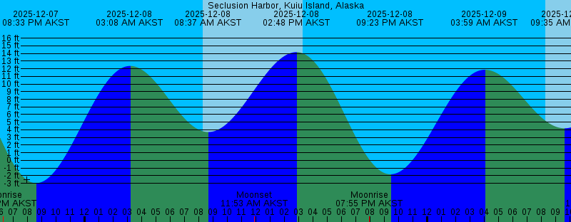 2025-12-07 11:36 AM AKST Moonset 2025-12-07 01:57 PM AKST 15.37 feet High Tide 2025-12-07 03:18 PM AKST Sunset 2025-12-07 06:17 PM AKST Moonrise 2025-12-07 08:33 PM AKST -2.98 feet Low Tide 2025-12-08 03:08 AM AKST 12.36 feet High Tide 2025-12-08 08:17 AM AKST Sunrise 2025-12-08 08:37 AM AKST 3.71 feet Low Tide 2025-12-08 11:53 AM AKST Moonset 2025-12-08 02:48 PM AKST 14.17 feet High Tide 2025-12-08 03:17 PM AKST Sunset 2025-12-08 07:55 PM AKST Moonrise 2025-12-08 09:23 PM AKST -1.82 feet Low Tide 2025-12-09 03:59 AM AKST 11.87 feet High Tide 2025-12-09 08:18 AM AKST Sunrise 2025-12-09 09:35 AM AKST 4.20 feet Low Tide 2025-12-09 12:03 PM AKST Moonset 2025-12-09 03:17 PM AKST Sunset 2025-12-09 03:42 PM AKST 12.67 feet High Tide 2025-12-09 09:27 PM AKST Moonrise 2025-12-09 10:14 PM AKST -0.46 feet Low Tide 2025-12-10 04:53 AM AKST 11.40 feet High Tide 2025-12-10 08:19 AM AKST Sunrise 2025-12-10 10:39 AM AKST 4.60 feet Low Tide 2025-12-10 12:09 PM AKST Moonset 2025-12-10 03:17 PM AKST Sunset 2025-12-10 04:41 PM AKST 11.07 feet High Tide 2025-12-10 10:53 PM AKST Moonrise 2025-12-10 11:08 PM AKST 0.96 feet Low Tide 2025-12-11 05:50 AM AKST 11.09 feet High Tide 2025-12-11 08:20 AM AKST Sunrise |