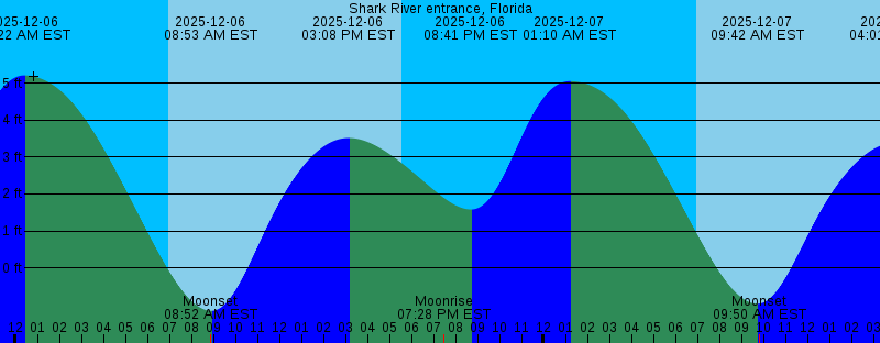 2025-12-06 12:22 AM EST 5.21 feet High Tide 2025-12-06 06:56 AM EST Sunrise 2025-12-06 08:52 AM EST Moonset 2025-12-06 08:53 AM EST -1.17 feet Low Tide 2025-12-06 03:08 PM EST 3.52 feet High Tide 2025-12-06 05:34 PM EST Sunset 2025-12-06 07:28 PM EST Moonrise 2025-12-06 08:41 PM EST 1.58 feet Low Tide 2025-12-07 01:10 AM EST 5.06 feet High Tide 2025-12-07 06:57 AM EST Sunrise 2025-12-07 09:42 AM EST -0.97 feet Low Tide 2025-12-07 09:50 AM EST Moonset 2025-12-07 04:01 PM EST 3.39 feet High Tide 2025-12-07 05:34 PM EST Sunset 2025-12-07 08:37 PM EST Moonrise 2025-12-07 09:31 PM EST 1.53 feet Low Tide 2025-12-08 02:05 AM EST 4.74 feet High Tide 2025-12-08 06:58 AM EST Sunrise 2025-12-08 10:32 AM EST -0.66 feet Low Tide 2025-12-08 10:38 AM EST Moonset 2025-12-08 04:50 PM EST 3.32 feet High Tide 2025-12-08 05:34 PM EST Sunset 2025-12-08 09:43 PM EST Moonrise 2025-12-08 10:26 PM EST 1.48 feet Low Tide 2025-12-09 03:14 AM EST 4.30 feet High Tide 2025-12-09 06:58 AM EST Sunrise 2025-12-09 11:19 AM EST Moonset 2025-12-09 11:24 AM EST -0.28 feet Low Tide 2025-12-09 05:35 PM EST Sunset 2025-12-09 05:36 PM EST 3.30 feet High Tide 2025-12-09 10:45 PM EST Moonrise 2025-12-09 11:31 PM EST 1.40 feet Low Tide |