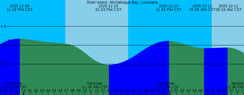 2025-12-09 10:22 PM CST Moonrise 2025-12-09 11:19 PM CST 1.35 feet High Tide 2025-12-10 06:49 AM CST Sunrise 2025-12-10 11:39 AM CST Moonset 2025-12-10 01:53 PM CST -0.03 feet Low Tide 2025-12-10 05:07 PM CST Sunset 2025-12-10 11:21 PM CST Moonrise 2025-12-10 11:45 PM CST 1.23 feet High Tide 2025-12-11 05:28 AM CST 0.85 feet Low Tide 2025-12-11 06:49 AM CST Sunrise 2025-12-11 09:19 AM CST 0.88 feet High Tide 2025-12-11 12:08 PM CST Moonset 2025-12-11 02:52 PM CST Last Quarter 2025-12-11 03:05 PM CST 0.28 feet Low Tide 2025-12-11 05:07 PM CST Sunset 2025-12-12 12:02 AM CST 1.14 feet High Tide 2025-12-12 12:18 AM CST Moonrise 2025-12-12 05:42 AM CST 0.55 feet Low Tide 2025-12-12 06:50 AM CST Sunrise 2025-12-12 12:08 PM CST 0.84 feet High Tide 2025-12-12 12:35 PM CST Moonset 2025-12-12 04:34 PM CST 0.56 feet Low Tide 2025-12-12 05:07 PM CST Sunset 2025-12-13 12:12 AM CST 1.07 feet High Tide 2025-12-13 01:12 AM CST Moonrise 2025-12-13 06:05 AM CST 0.25 feet Low Tide 2025-12-13 06:51 AM CST Sunrise 2025-12-13 01:02 PM CST Moonset 2025-12-13 02:23 PM CST 0.98 feet High Tide 2025-12-13 05:07 PM CST Sunset 2025-12-13 06:10 PM CST 0.79 feet Low Tide |
