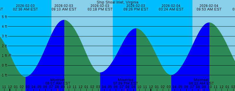 2026-02-02 05:28 PM EST Sunset 2026-02-02 06:31 PM EST Moonrise 2026-02-02 08:39 PM EST 3.71 feet High Tide 2026-02-03 02:36 AM EST -1.16 feet Low Tide 2026-02-03 07:04 AM EST Sunrise 2026-02-03 08:07 AM EST Moonset 2026-02-03 09:10 AM EST 4.68 feet High Tide 2026-02-03 03:18 PM EST -0.71 feet Low Tide 2026-02-03 05:30 PM EST Sunset 2026-02-03 07:39 PM EST Moonrise 2026-02-03 09:26 PM EST 3.82 feet High Tide 2026-02-04 03:24 AM EST -0.97 feet Low Tide 2026-02-04 07:03 AM EST Sunrise 2026-02-04 08:32 AM EST Moonset 2026-02-04 09:53 AM EST 4.41 feet High Tide 2026-02-04 03:59 PM EST -0.61 feet Low Tide 2026-02-04 05:31 PM EST Sunset 2026-02-04 08:44 PM EST Moonrise 2026-02-04 10:11 PM EST 3.85 feet High Tide 2026-02-05 04:11 AM EST -0.68 feet Low Tide 2026-02-05 07:02 AM EST Sunrise 2026-02-05 08:56 AM EST Moonset 2026-02-05 10:35 AM EST 4.07 feet High Tide 2026-02-05 04:40 PM EST -0.42 feet Low Tide 2026-02-05 05:32 PM EST Sunset 2026-02-05 09:46 PM EST Moonrise 2026-02-05 10:55 PM EST 3.82 feet High Tide 2026-02-06 05:00 AM EST -0.31 feet Low Tide 2026-02-06 07:01 AM EST Sunrise 2026-02-06 09:19 AM EST Moonset 2026-02-06 11:15 AM EST 3.68 feet High Tide |