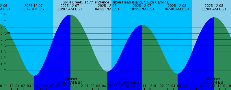 2025-12-06 09:39 PM EST 7.59 feet High Tide 2025-12-07 03:49 AM EST -0.91 feet Low Tide 2025-12-07 07:11 AM EST Sunrise 2025-12-07 10:07 AM EST Moonset 2025-12-07 10:07 AM EST 9.07 feet High Tide 2025-12-07 04:32 PM EST -0.23 feet Low Tide 2025-12-07 05:18 PM EST Sunset 2025-12-07 08:19 PM EST Moonrise 2025-12-07 10:35 PM EST 7.38 feet High Tide 2025-12-08 04:40 AM EST -0.57 feet Low Tide 2025-12-08 07:11 AM EST Sunrise 2025-12-08 10:51 AM EST Moonset 2025-12-08 11:03 AM EST 8.63 feet High Tide 2025-12-08 05:18 PM EST Sunset 2025-12-08 05:22 PM EST 0.05 feet Low Tide 2025-12-08 09:29 PM EST Moonrise 2025-12-08 11:34 PM EST 7.16 feet High Tide 2025-12-09 05:33 AM EST -0.12 feet Low Tide 2025-12-09 07:12 AM EST Sunrise 2025-12-09 11:28 AM EST Moonset 2025-12-09 11:59 AM EST 8.17 feet High Tide 2025-12-09 05:18 PM EST Sunset 2025-12-09 06:13 PM EST 0.36 feet Low Tide 2025-12-09 10:34 PM EST Moonrise 2025-12-10 12:35 AM EST 7.00 feet High Tide 2025-12-10 06:28 AM EST 0.38 feet Low Tide 2025-12-10 07:13 AM EST Sunrise 2025-12-10 11:59 AM EST Moonset 2025-12-10 12:55 PM EST 7.72 feet High Tide 2025-12-10 05:18 PM EST Sunset 2025-12-10 07:06 PM EST 0.63 feet Low Tide |