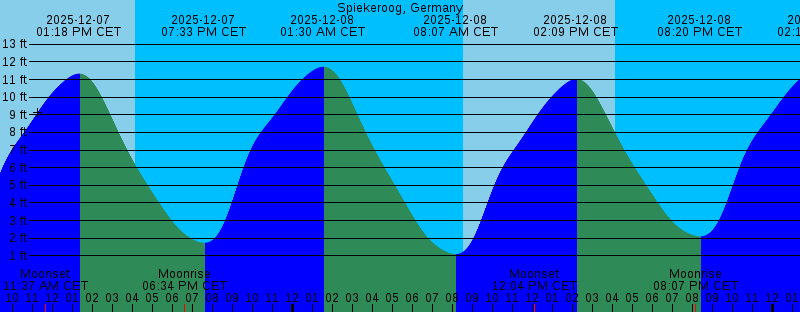 2025-12-07 07:15 AM CET 1.03 feet Low Tide 2025-12-07 08:32 AM CET Sunrise 2025-12-07 11:37 AM CET Moonset 2025-12-07 01:18 PM CET 11.33 feet High Tide 2025-12-07 04:09 PM CET Sunset 2025-12-07 06:34 PM CET Moonrise 2025-12-07 07:33 PM CET 1.74 feet Low Tide 2025-12-08 01:30 AM CET 11.72 feet High Tide 2025-12-08 08:07 AM CET 1.09 feet Low Tide 2025-12-08 08:33 AM CET Sunrise 2025-12-08 12:04 PM CET Moonset 2025-12-08 02:09 PM CET 11.03 feet High Tide 2025-12-08 04:08 PM CET Sunset 2025-12-08 08:07 PM CET Moonrise 2025-12-08 08:20 PM CET 2.10 feet Low Tide 2025-12-09 02:19 AM CET 11.65 feet High Tide 2025-12-09 08:34 AM CET Sunrise 2025-12-09 08:59 AM CET 1.55 feet Low Tide 2025-12-09 12:21 PM CET Moonset 2025-12-09 03:01 PM CET 10.62 feet High Tide 2025-12-09 04:08 PM CET Sunset 2025-12-09 09:06 PM CET 2.70 feet Low Tide 2025-12-09 09:36 PM CET Moonrise 2025-12-10 03:07 AM CET 11.47 feet High Tide 2025-12-10 08:35 AM CET Sunrise 2025-12-10 09:52 AM CET 2.24 feet Low Tide 2025-12-10 12:33 PM CET Moonset 2025-12-10 03:51 PM CET 10.24 feet High Tide 2025-12-10 04:08 PM CET Sunset 2025-12-10 09:52 PM CET 3.32 feet Low Tide 2025-12-10 10:59 PM CET Moonrise 2025-12-11 03:57 AM CET 11.30 feet High Tide |