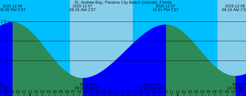 2025-12-06 09:05 PM CST 1.97 feet High Tide 2025-12-07 06:27 AM CST Sunrise 2025-12-07 08:29 AM CST -0.89 feet Low Tide 2025-12-07 09:22 AM CST Moonset 2025-12-07 04:43 PM CST Sunset 2025-12-07 07:46 PM CST Moonrise 2025-12-07 10:01 PM CST 1.85 feet High Tide 2025-12-08 06:27 AM CST Sunrise 2025-12-08 09:19 AM CST -0.78 feet Low Tide 2025-12-08 10:08 AM CST Moonset 2025-12-08 04:43 PM CST Sunset 2025-12-08 08:54 PM CST Moonrise 2025-12-08 10:49 PM CST 1.63 feet High Tide 2025-12-09 06:28 AM CST Sunrise 2025-12-09 09:51 AM CST -0.57 feet Low Tide 2025-12-09 10:45 AM CST Moonset 2025-12-09 04:43 PM CST Sunset 2025-12-09 09:58 PM CST Moonrise 2025-12-09 11:26 PM CST 1.33 feet High Tide 2025-12-10 06:29 AM CST Sunrise 2025-12-10 10:03 AM CST -0.30 feet Low Tide 2025-12-10 11:18 AM CST Moonset 2025-12-10 04:43 PM CST Sunset |