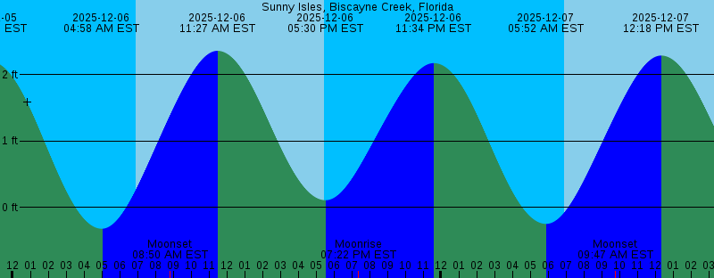2025-12-06 04:58 AM EST -0.32 feet Low Tide 2025-12-06 06:54 AM EST Sunrise 2025-12-06 08:50 AM EST Moonset 2025-12-06 11:27 AM EST 2.36 feet High Tide 2025-12-06 05:29 PM EST Sunset 2025-12-06 05:30 PM EST 0.11 feet Low Tide 2025-12-06 07:22 PM EST Moonrise 2025-12-06 11:34 PM EST 2.17 feet High Tide 2025-12-07 05:52 AM EST -0.25 feet Low Tide 2025-12-07 06:54 AM EST Sunrise 2025-12-07 09:47 AM EST Moonset 2025-12-07 12:18 PM EST 2.28 feet High Tide 2025-12-07 05:29 PM EST Sunset 2025-12-07 06:25 PM EST 0.13 feet Low Tide 2025-12-07 08:32 PM EST Moonrise 2025-12-08 12:28 AM EST 2.10 feet High Tide 2025-12-08 06:47 AM EST -0.14 feet Low Tide 2025-12-08 06:55 AM EST Sunrise 2025-12-08 10:35 AM EST Moonset 2025-12-08 01:10 PM EST 2.19 feet High Tide 2025-12-08 05:29 PM EST Sunset 2025-12-08 07:22 PM EST 0.17 feet Low Tide 2025-12-08 09:38 PM EST Moonrise 2025-12-09 01:24 AM EST 2.01 feet High Tide 2025-12-09 06:56 AM EST Sunrise 2025-12-09 07:44 AM EST -0.00 feet Low Tide 2025-12-09 11:15 AM EST Moonset 2025-12-09 02:02 PM EST 2.07 feet High Tide 2025-12-09 05:29 PM EST Sunset 2025-12-09 08:21 PM EST 0.20 feet Low Tide 2025-12-09 10:40 PM EST Moonrise |