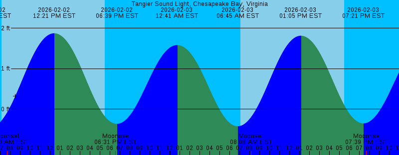 2026-02-02 07:06 AM EST Sunrise 2026-02-02 07:40 AM EST Moonset 2026-02-02 12:21 PM EST 1.87 feet High Tide 2026-02-02 05:28 PM EST Sunset 2026-02-02 06:31 PM EST Moonrise 2026-02-02 06:39 PM EST -0.36 feet Low Tide 2026-02-03 12:41 AM EST 1.58 feet High Tide 2026-02-03 06:45 AM EST -0.42 feet Low Tide 2026-02-03 07:06 AM EST Sunrise 2026-02-03 08:08 AM EST Moonset 2026-02-03 01:05 PM EST 1.81 feet High Tide 2026-02-03 05:29 PM EST Sunset 2026-02-03 07:21 PM EST -0.35 feet Low Tide 2026-02-03 07:39 PM EST Moonrise 2026-02-04 01:26 AM EST 1.61 feet High Tide 2026-02-04 07:05 AM EST Sunrise 2026-02-04 07:33 AM EST -0.33 feet Low Tide 2026-02-04 08:33 AM EST Moonset 2026-02-04 01:46 PM EST 1.71 feet High Tide 2026-02-04 05:30 PM EST Sunset 2026-02-04 08:02 PM EST -0.30 feet Low Tide 2026-02-04 08:44 PM EST Moonrise 2026-02-05 02:09 AM EST 1.61 feet High Tide 2026-02-05 07:04 AM EST Sunrise 2026-02-05 08:20 AM EST -0.21 feet Low Tide 2026-02-05 08:56 AM EST Moonset 2026-02-05 02:26 PM EST 1.58 feet High Tide 2026-02-05 05:31 PM EST Sunset 2026-02-05 08:40 PM EST -0.21 feet Low Tide 2026-02-05 09:47 PM EST Moonrise 2026-02-06 02:51 AM EST 1.58 feet High Tide |