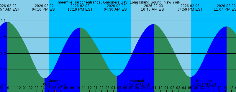 2026-02-02 07:31 AM EST Moonset 2026-02-02 09:58 AM EST 2.93 feet High Tide 2026-02-02 04:16 PM EST -0.52 feet Low Tide 2026-02-02 05:07 PM EST Sunset 2026-02-02 06:10 PM EST Moonrise 2026-02-02 10:19 PM EST 2.59 feet High Tide 2026-02-03 04:30 AM EST -0.37 feet Low Tide 2026-02-03 06:57 AM EST Sunrise 2026-02-03 07:57 AM EST Moonset 2026-02-03 10:45 AM EST 2.80 feet High Tide 2026-02-03 04:59 PM EST -0.44 feet Low Tide 2026-02-03 05:08 PM EST Sunset 2026-02-03 07:21 PM EST Moonrise 2026-02-03 11:07 PM EST 2.66 feet High Tide 2026-02-04 05:19 AM EST -0.28 feet Low Tide 2026-02-04 06:56 AM EST Sunrise 2026-02-04 08:19 AM EST Moonset 2026-02-04 11:31 AM EST 2.62 feet High Tide 2026-02-04 05:09 PM EST Sunset 2026-02-04 05:43 PM EST -0.29 feet Low Tide 2026-02-04 08:29 PM EST Moonrise 2026-02-04 11:55 PM EST 2.68 feet High Tide 2026-02-05 06:10 AM EST -0.14 feet Low Tide 2026-02-05 06:55 AM EST Sunrise 2026-02-05 08:40 AM EST Moonset 2026-02-05 12:17 PM EST 2.41 feet High Tide 2026-02-05 05:10 PM EST Sunset 2026-02-05 06:27 PM EST -0.10 feet Low Tide 2026-02-05 09:34 PM EST Moonrise 2026-02-06 12:43 AM EST 2.65 feet High Tide 2026-02-06 06:54 AM EST Sunrise 2026-02-06 07:03 AM EST 0.02 feet Low Tide |