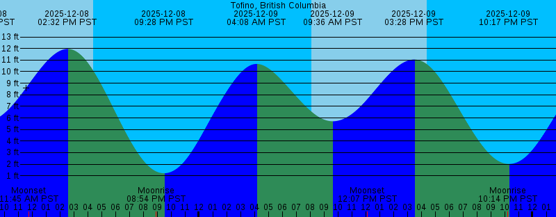 2025-12-08 11:45 AM PST Moonset 2025-12-08 02:32 PM PST 11.96 feet High Tide 2025-12-08 04:25 PM PST Sunset 2025-12-08 08:54 PM PST Moonrise 2025-12-08 09:28 PM PST 1.22 feet Low Tide 2025-12-09 04:08 AM PST 10.66 feet High Tide 2025-12-09 08:06 AM PST Sunrise 2025-12-09 09:36 AM PST 5.71 feet Low Tide 2025-12-09 12:07 PM PST Moonset 2025-12-09 03:28 PM PST 11.04 feet High Tide 2025-12-09 04:25 PM PST Sunset 2025-12-09 10:14 PM PST Moonrise 2025-12-09 10:17 PM PST 2.02 feet Low Tide 2025-12-10 04:58 AM PST 10.55 feet High Tide 2025-12-10 08:07 AM PST Sunrise 2025-12-10 10:43 AM PST 5.69 feet Low Tide 2025-12-10 12:23 PM PST Moonset 2025-12-10 04:25 PM PST Sunset 2025-12-10 04:29 PM PST 10.10 feet High Tide 2025-12-10 11:07 PM PST 2.92 feet Low Tide 2025-12-10 11:29 PM PST Moonrise 2025-12-11 05:50 AM PST 10.52 feet High Tide 2025-12-11 08:08 AM PST Sunrise 2025-12-11 12:00 PM PST 5.52 feet Low Tide 2025-12-11 12:37 PM PST Moonset 2025-12-11 12:52 PM PST Last Quarter 2025-12-11 04:25 PM PST Sunset 2025-12-11 05:39 PM PST 9.30 feet High Tide 2025-12-11 11:59 PM PST 3.84 feet Low Tide 2025-12-12 12:41 AM PST Moonrise 2025-12-12 06:42 AM PST 10.57 feet High Tide 2025-12-12 08:09 AM PST Sunrise |